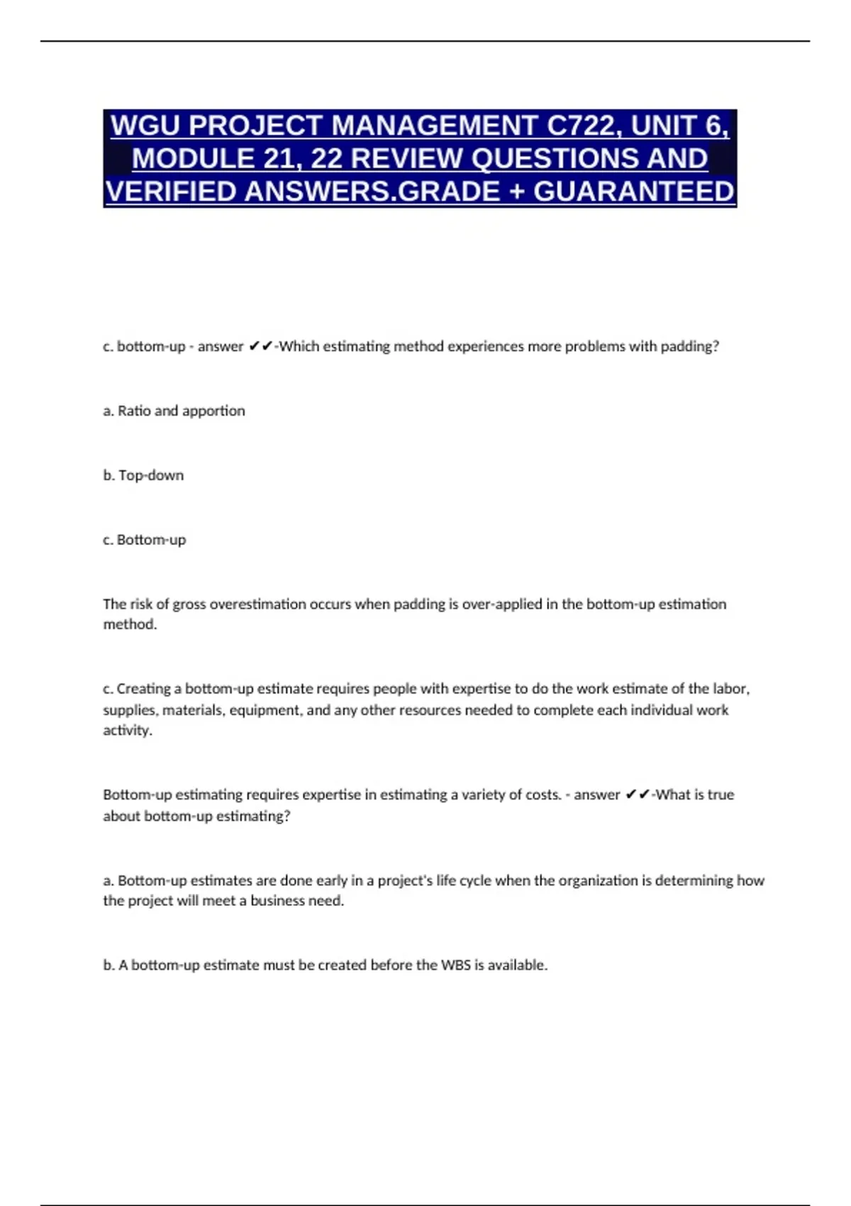 c. bottom-up - answer ✔✔-Which estimating method experiences more problems with padding?