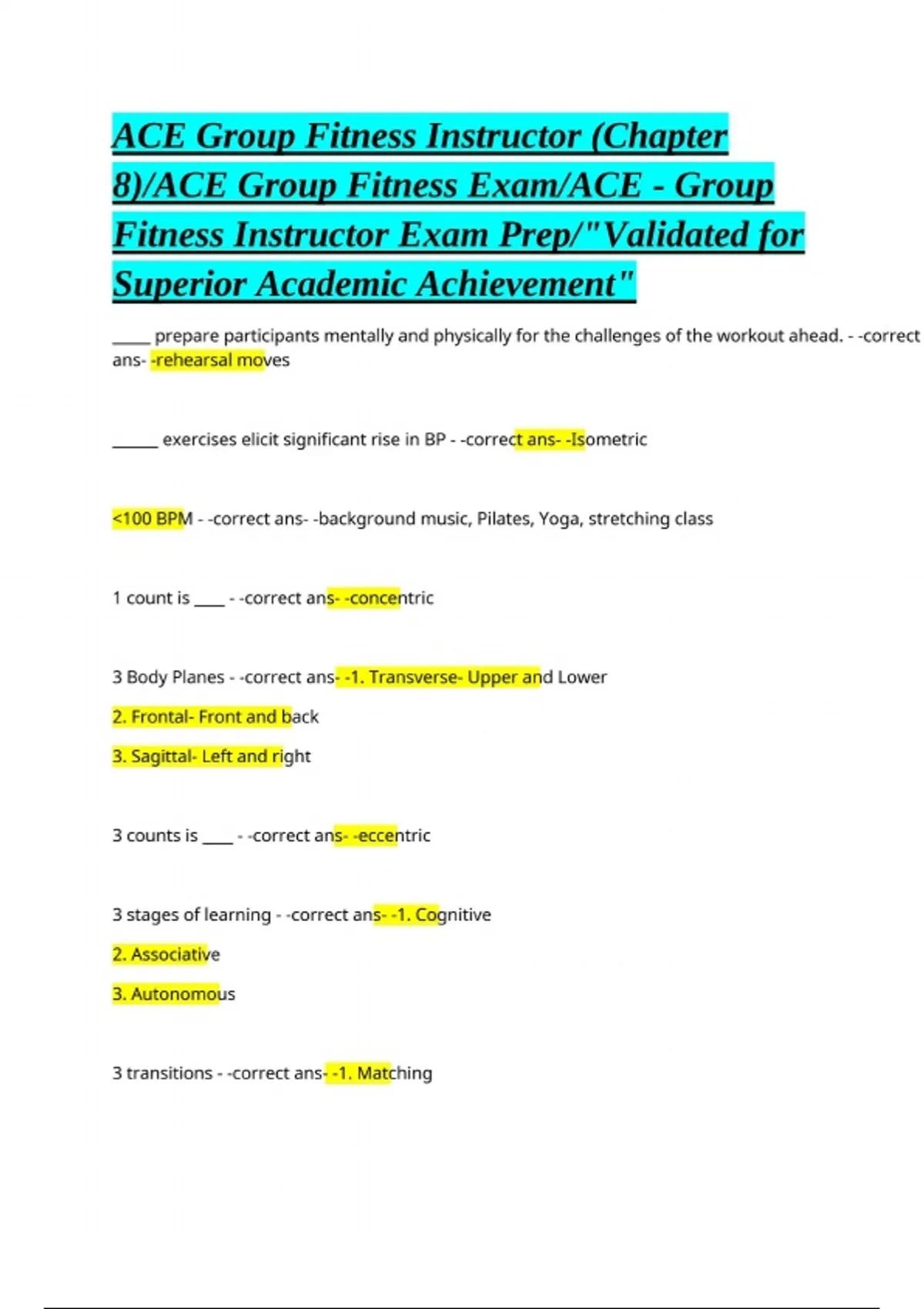 ACE Group Fitness Instructor (Chapter 8) ACE Group Fitness Exam ACE - Group Fitness Instructor Exam Prep "Validated for Superior Academic Achievement"