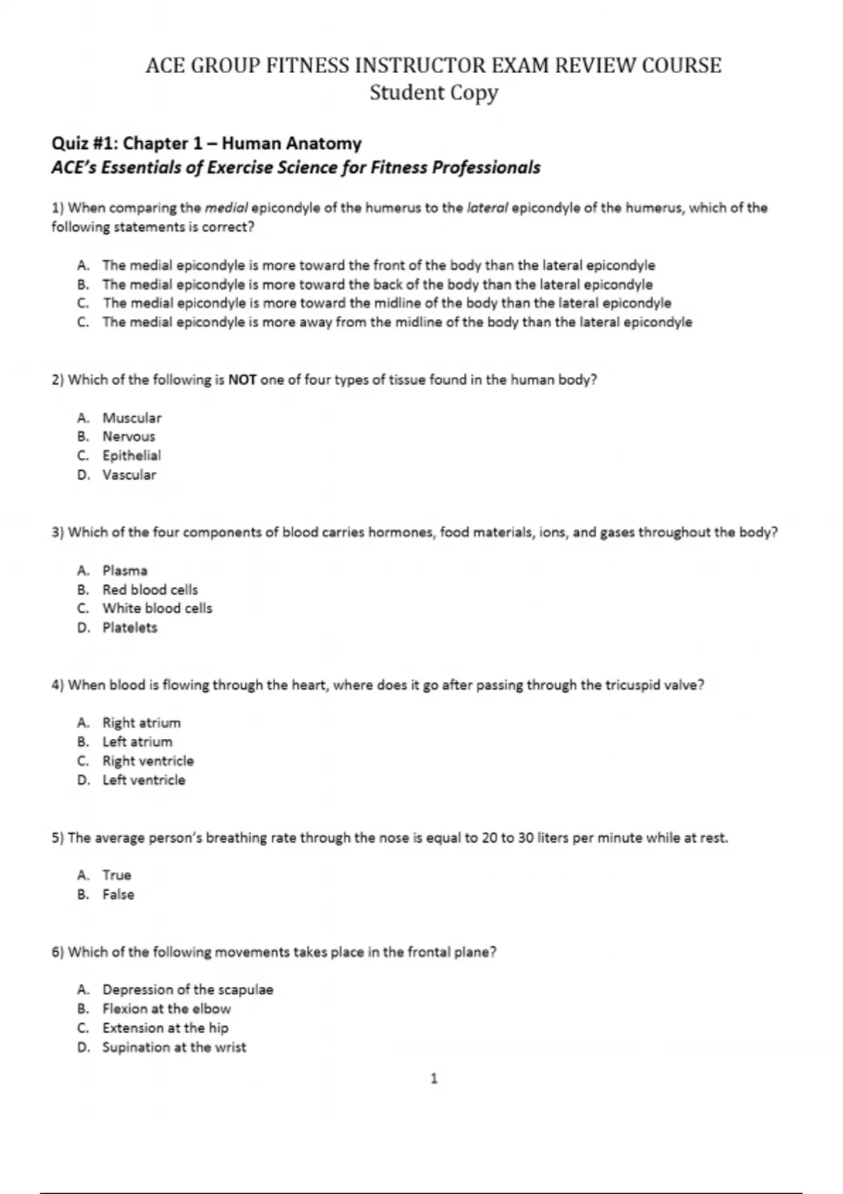 ACE Group Fitness Instructor Exam Review Course Student Copy