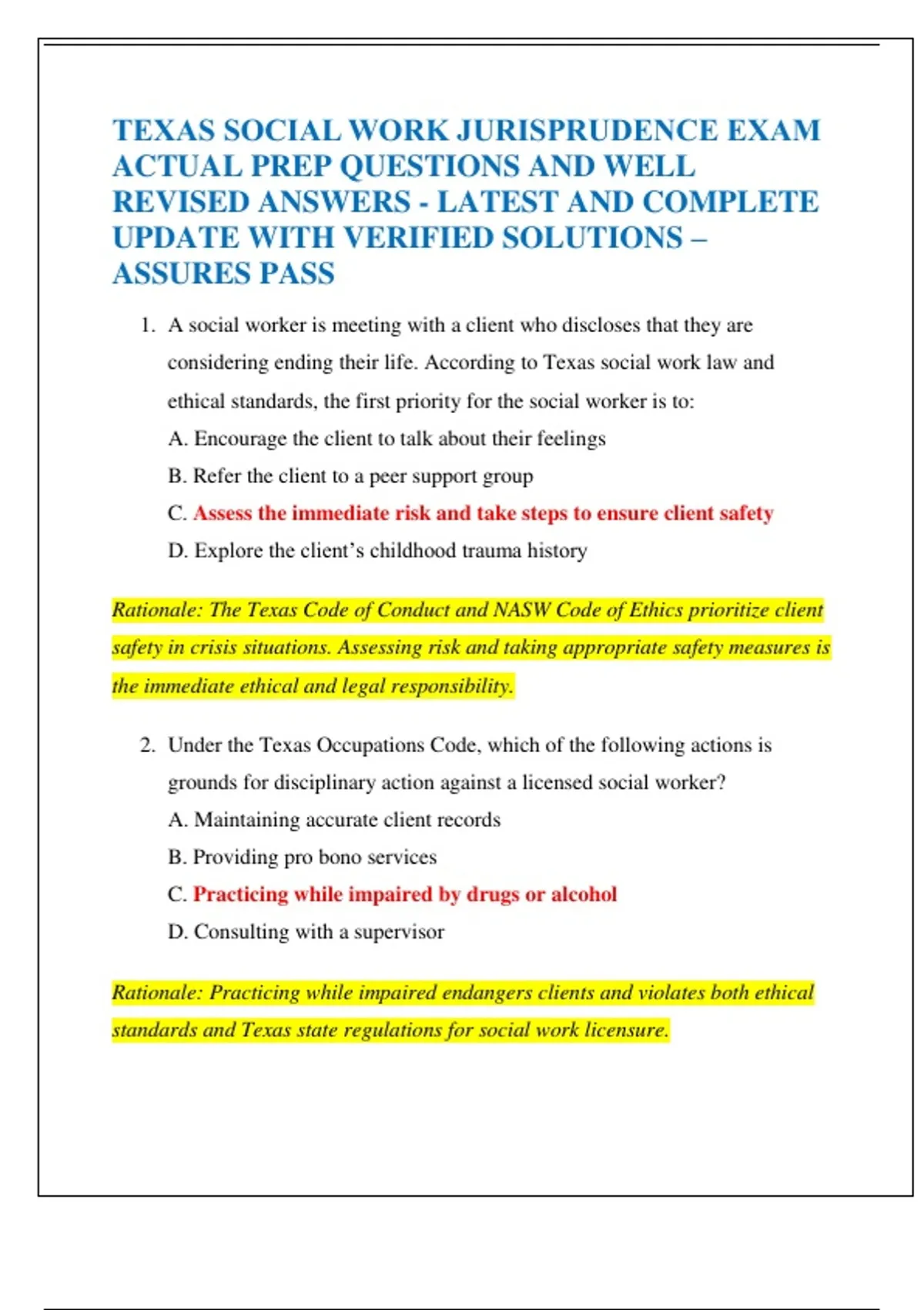 Rationale: The Texas Code of Conduct and NASW Code of Ethics prioritize client