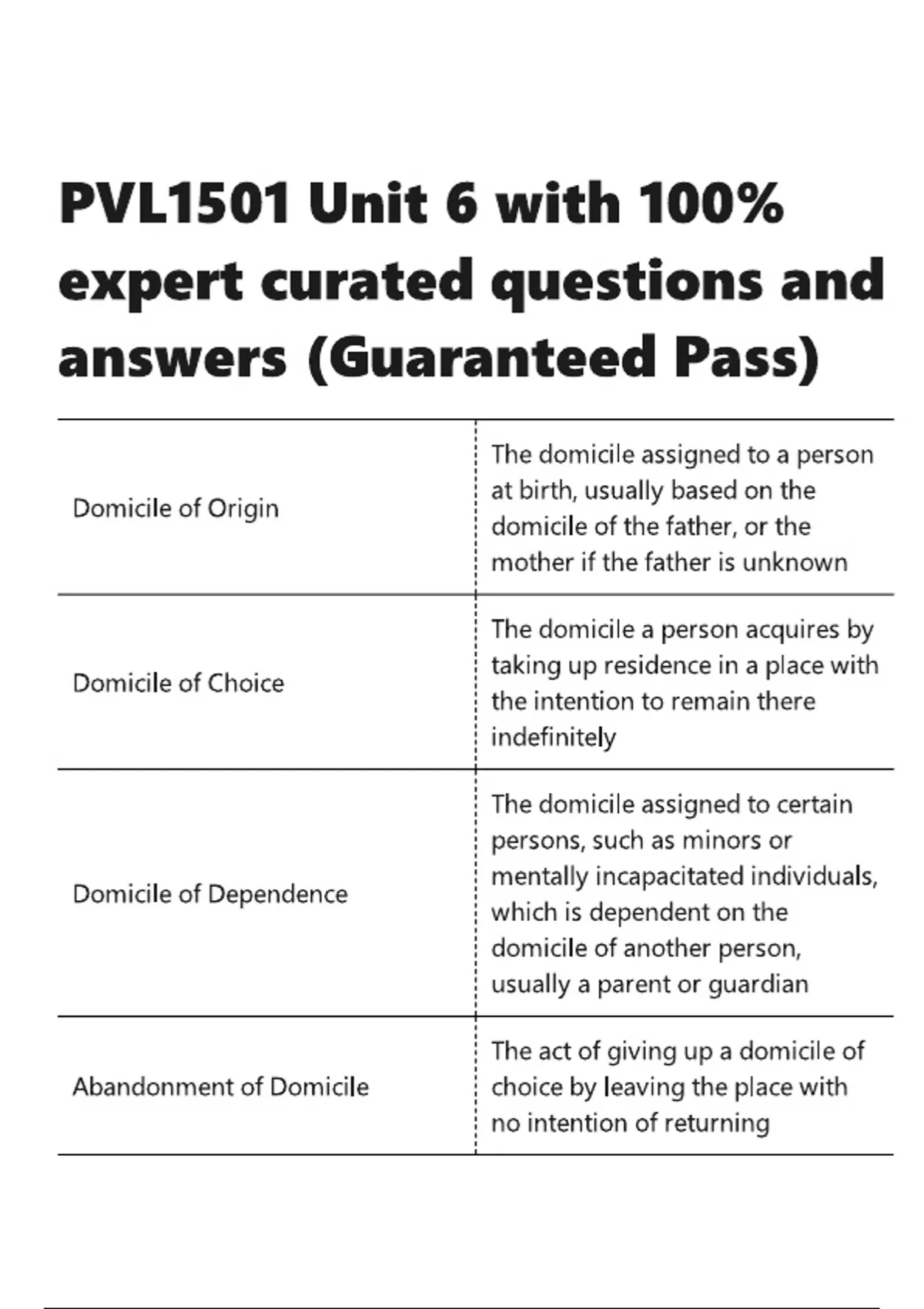 PVL1501 Unit 6 with 100- expert curated questions and answers (Guaranteed Pass).