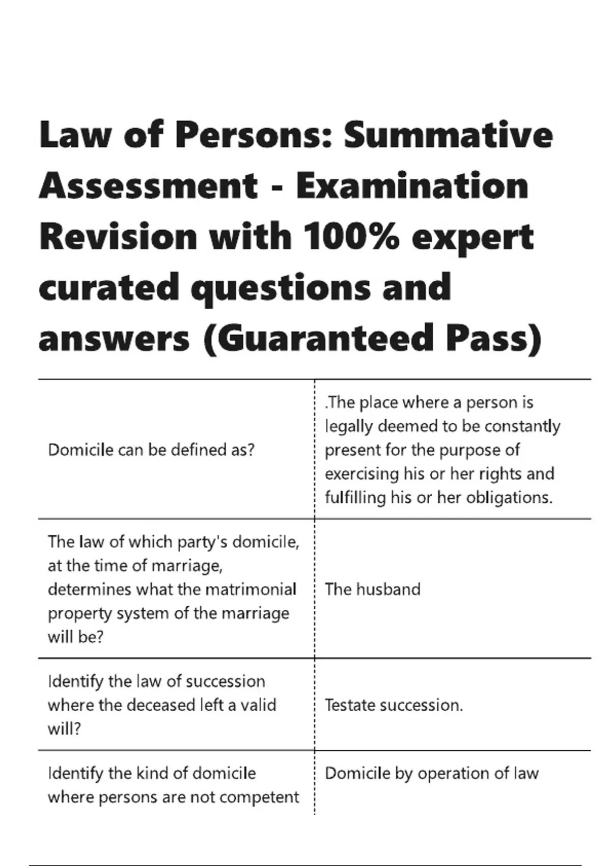 Law of Persons Summative Assessment - Examination Revision with 100- expert curated questions and answers