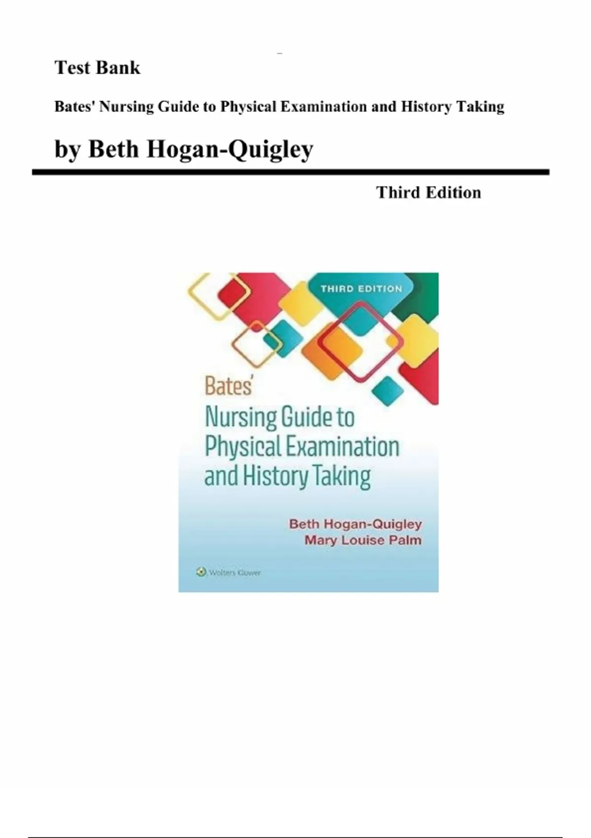Bates’ Nursing Guide to Physical Examination and History Taking – 3rd Edition by Beth Hogan-Quigley | Complete Test Bank (All Chapters)