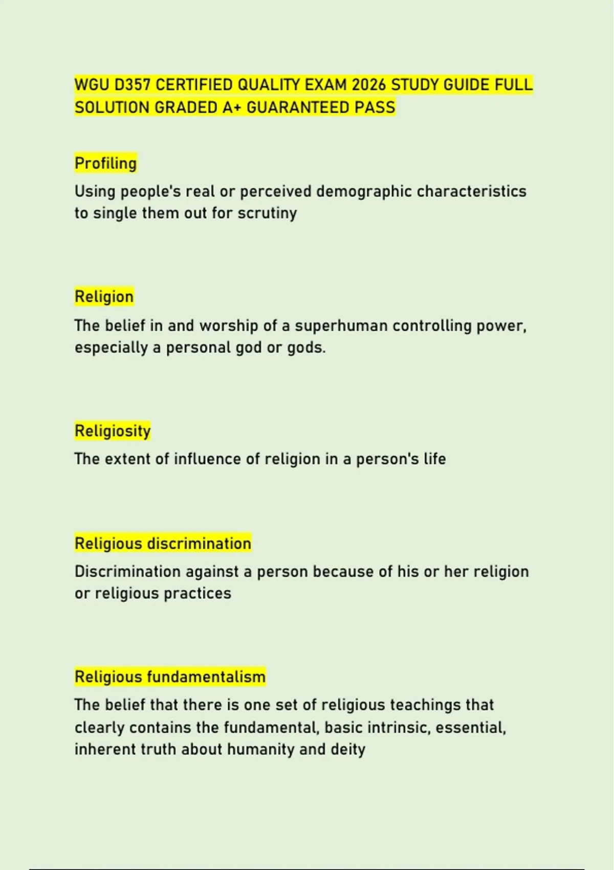 WGU D357 CERTIFIED QUALITY EXAM 2026 STUDY GUIDE FULL SOLUTION GRADED A+ GUARANTEED PASS