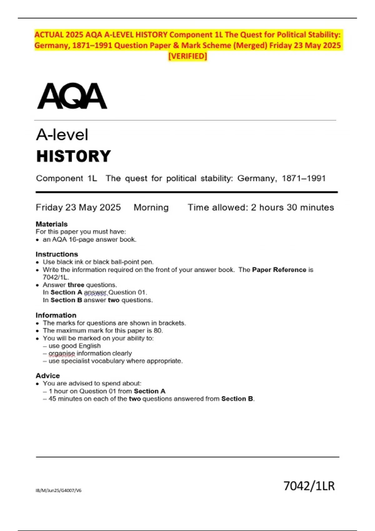 Germany, 1871–1991 Question Paper & Mark Scheme (Merged) Friday 23 May 2025