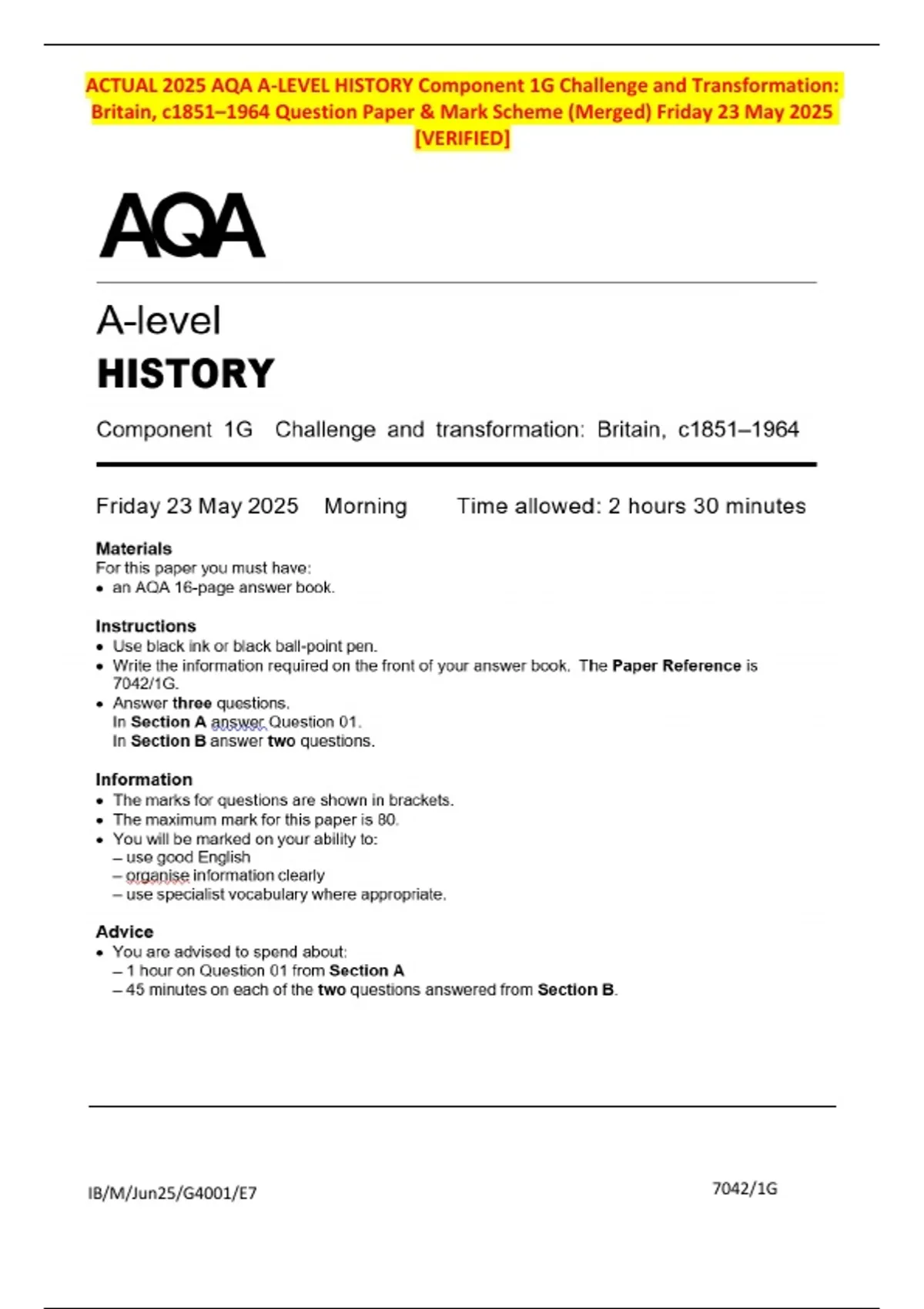 Britain, c1851–1964 Question Paper & Mark Scheme (Merged) Friday 23 May 2025