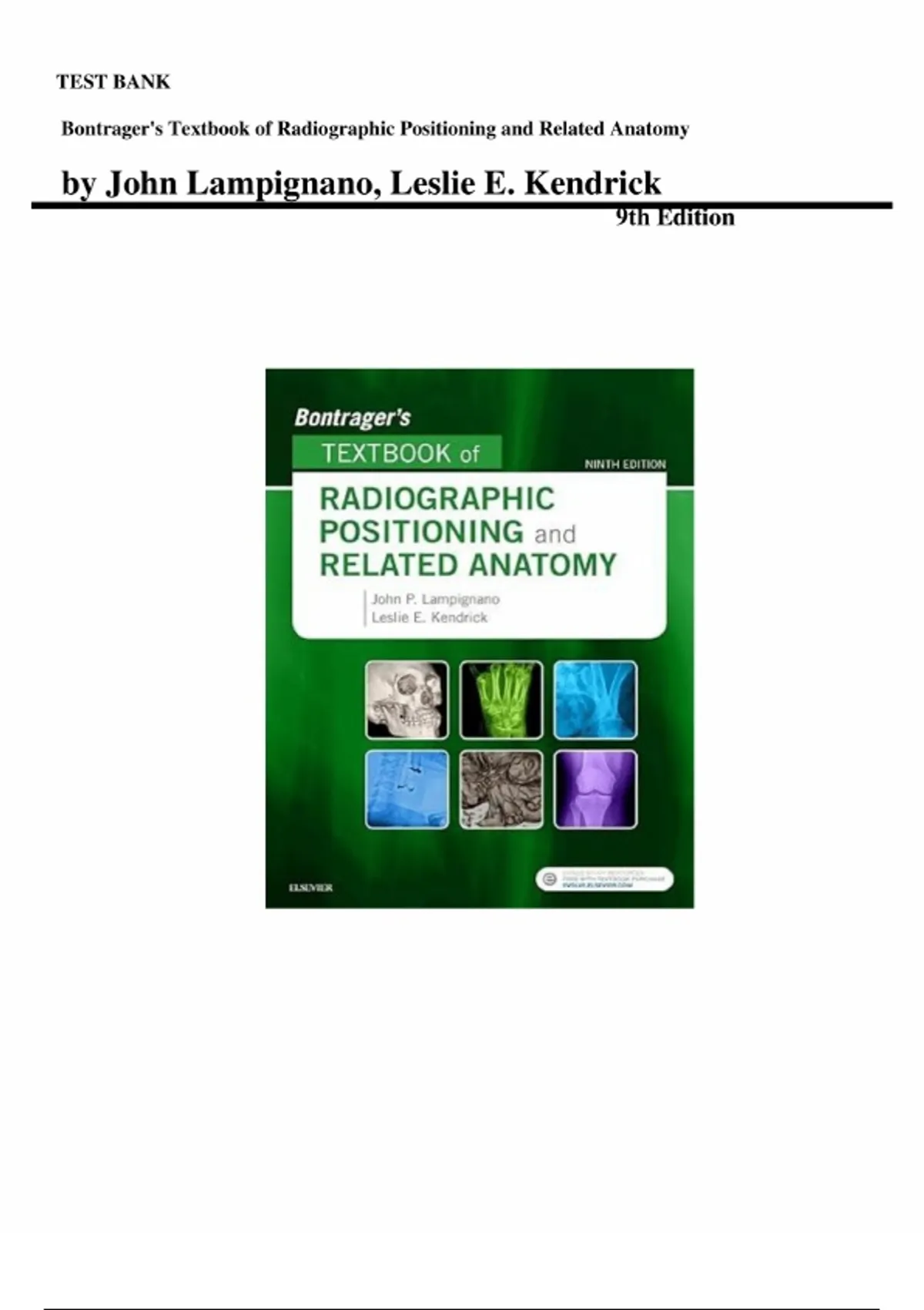 Bontrager’s Textbook of Radiographic Positioning and Related Anatomy – 9th Edition by John Lampignano | Complete Test Bank (All Chapters)