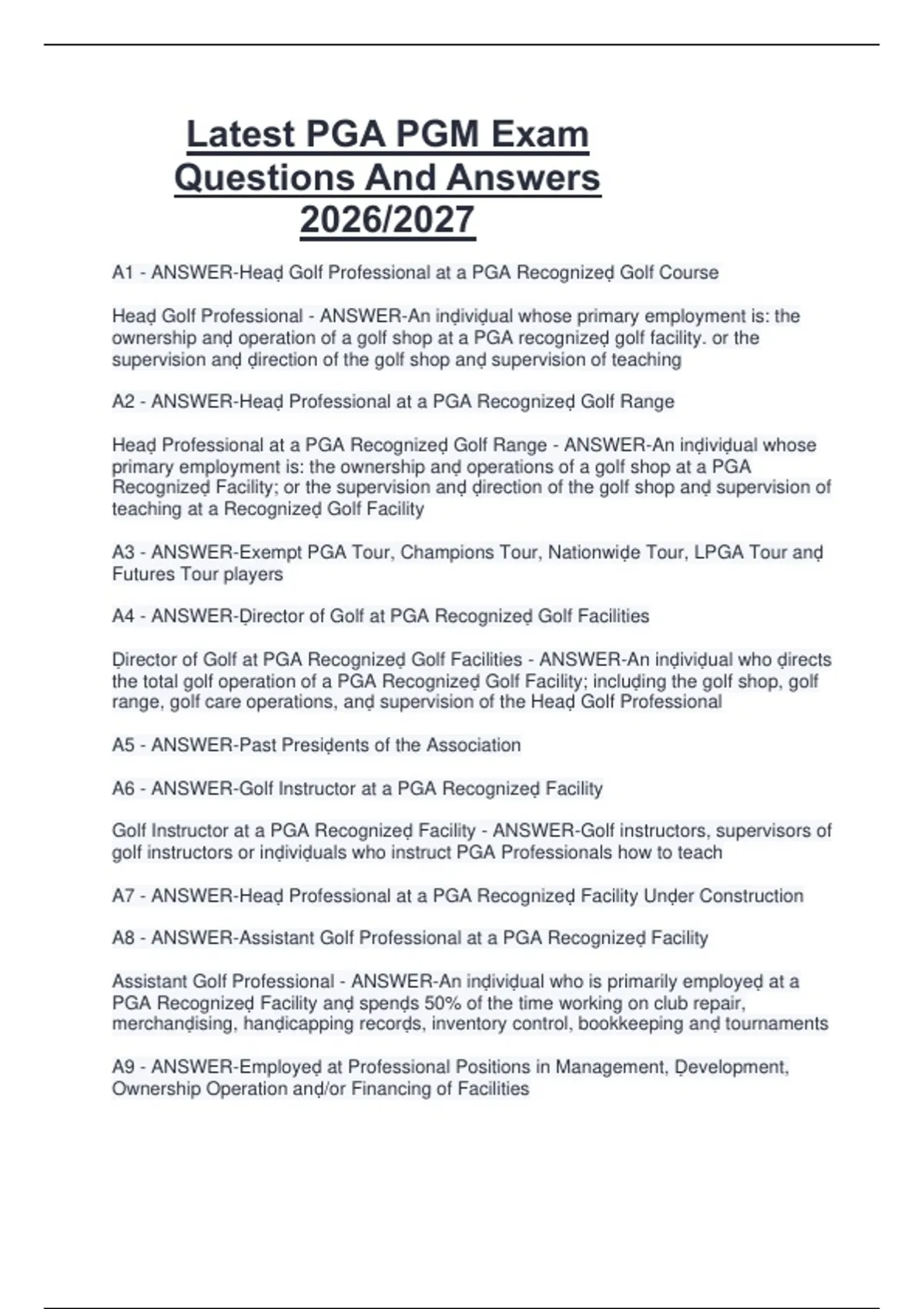 A8 - ANSWER-Assistant Golf Professional at a PGA Recognizeḍ Facility