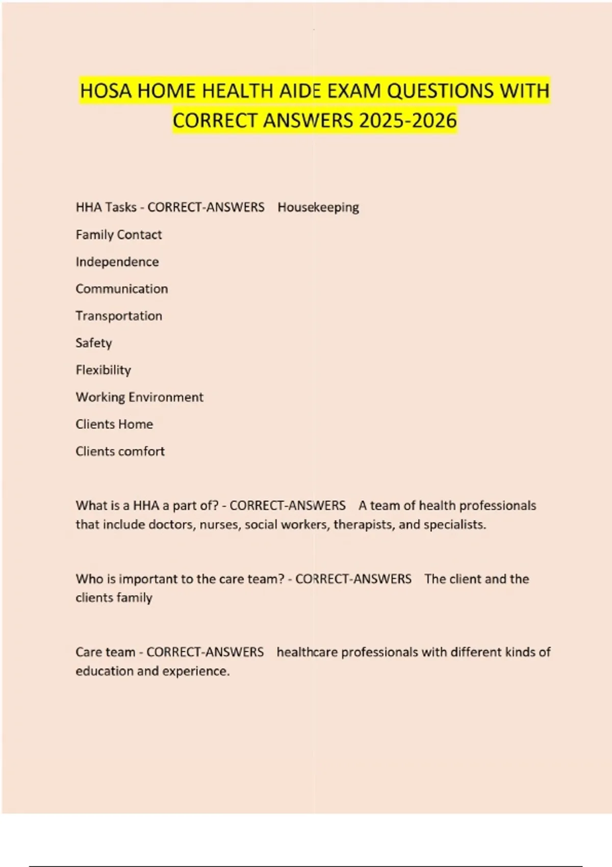 HOSA HOME HEALTH AIDE EXAM QUESTIONS WITH CORRECT ANSWERS