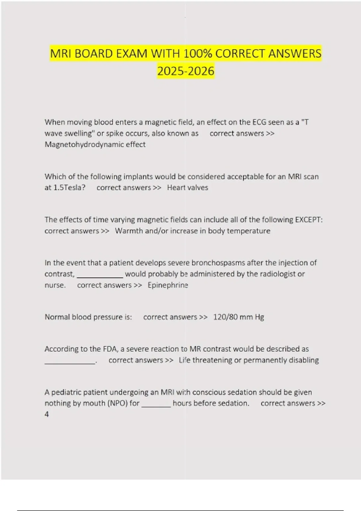 mri board exam with 100 correct answers