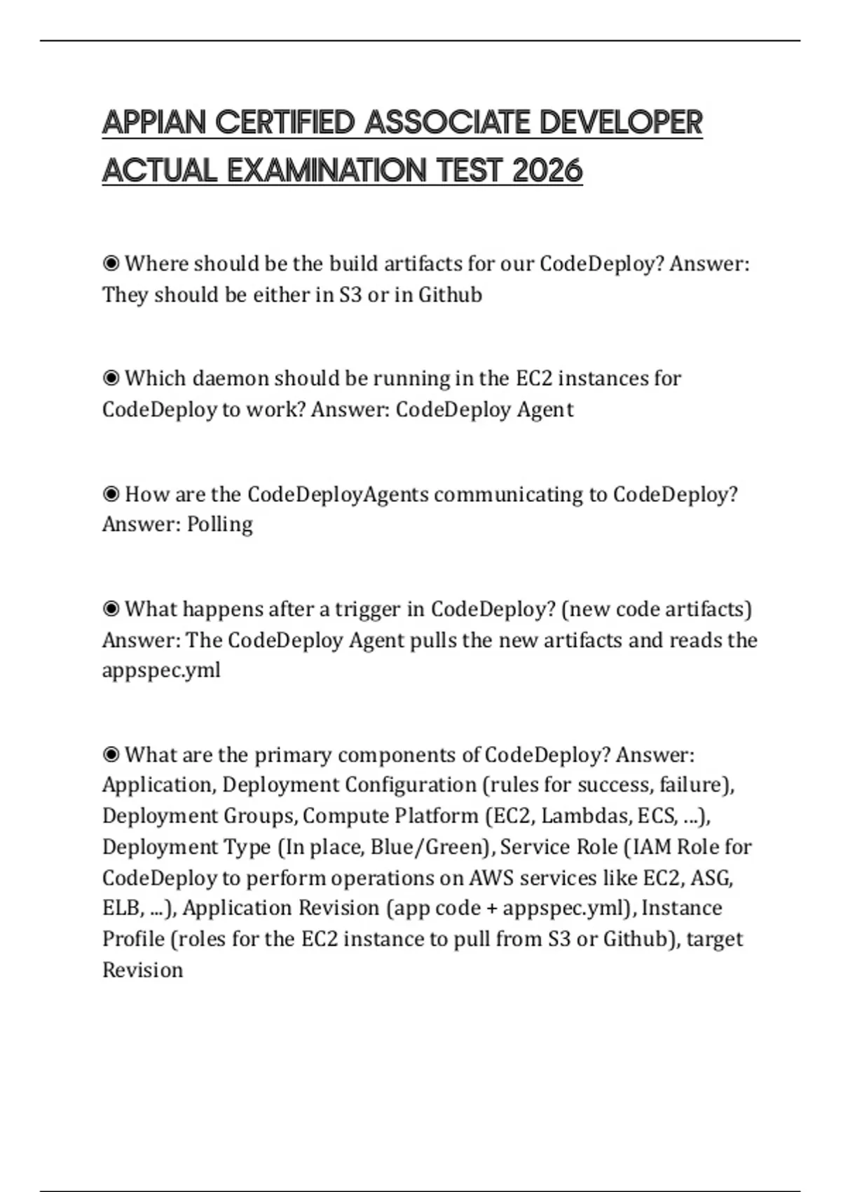 ◉ What are the primary components of CodeDeploy? Answer: