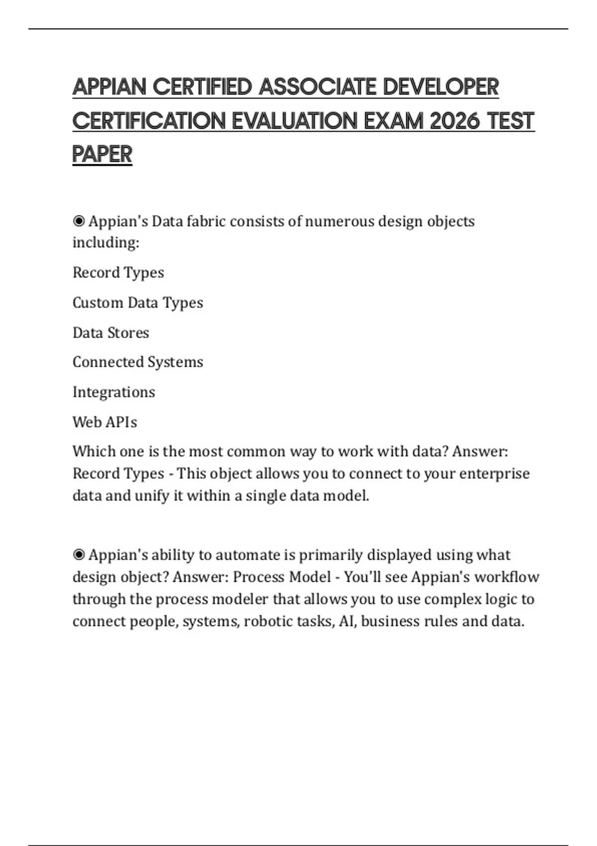 APPIAN CERTIFIED ASSOCIATE DEVELOPER CERTIFICATION EVALUATION EXAM 2026 TEST PAPER