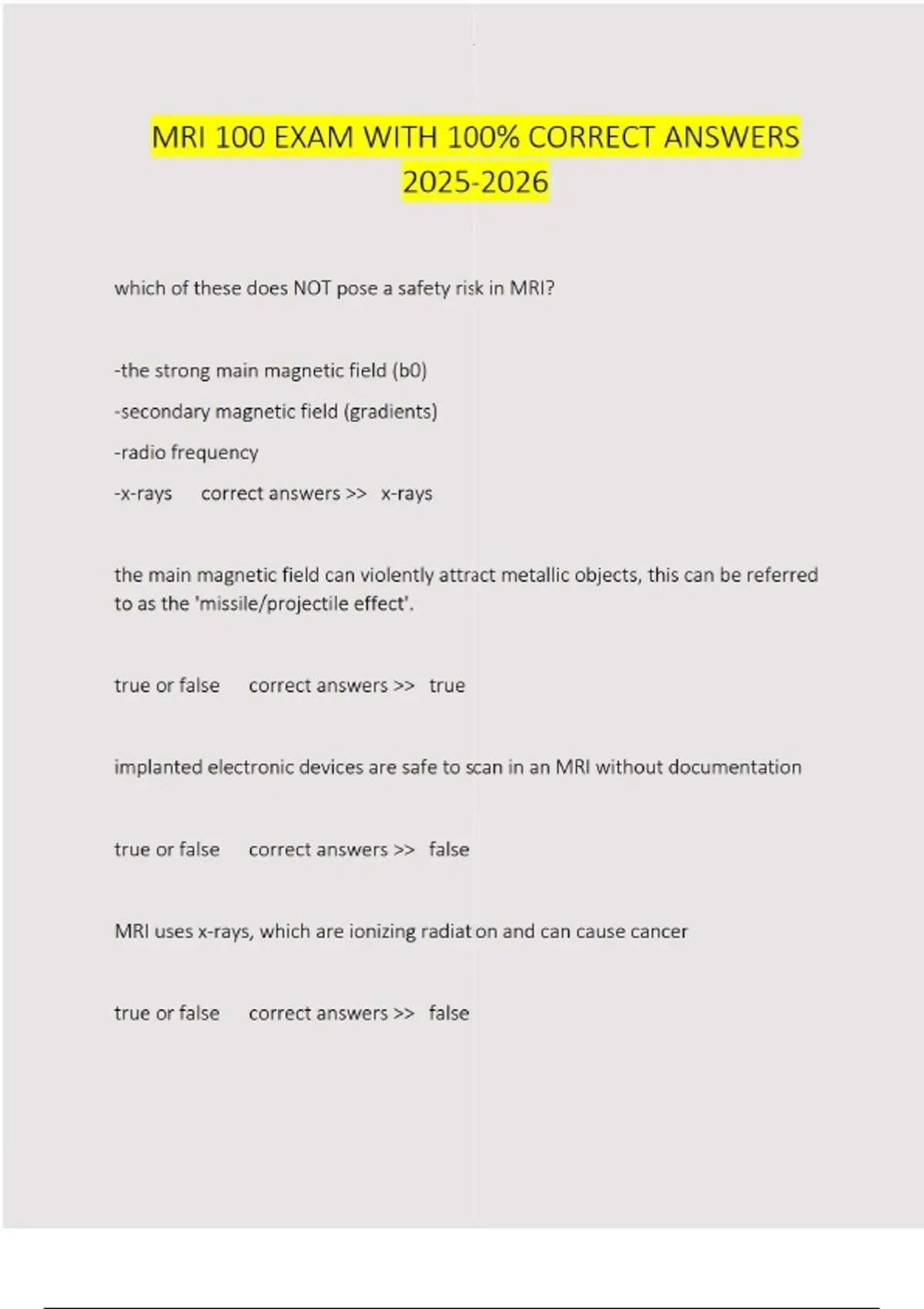 MRI 100 EXAM WITH 100% CORRECT ANSWERS