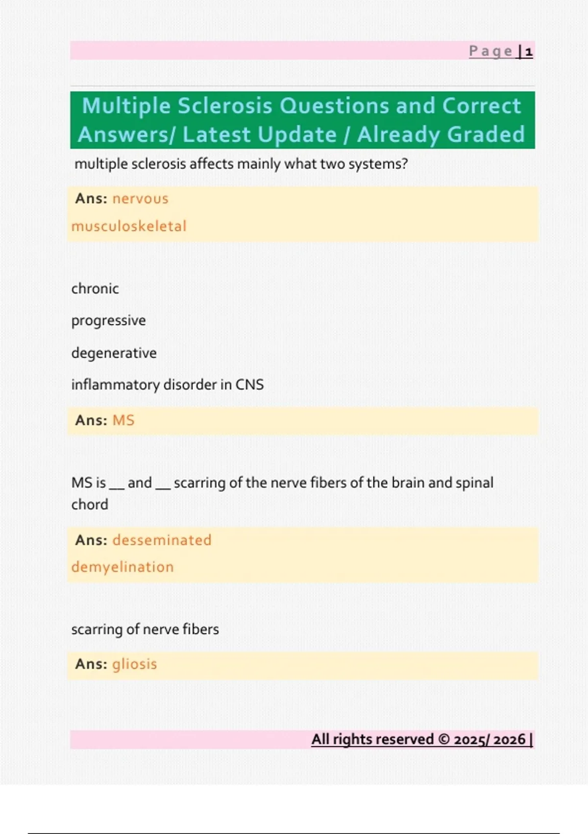 Multiple Sclerosis Questions and Correct