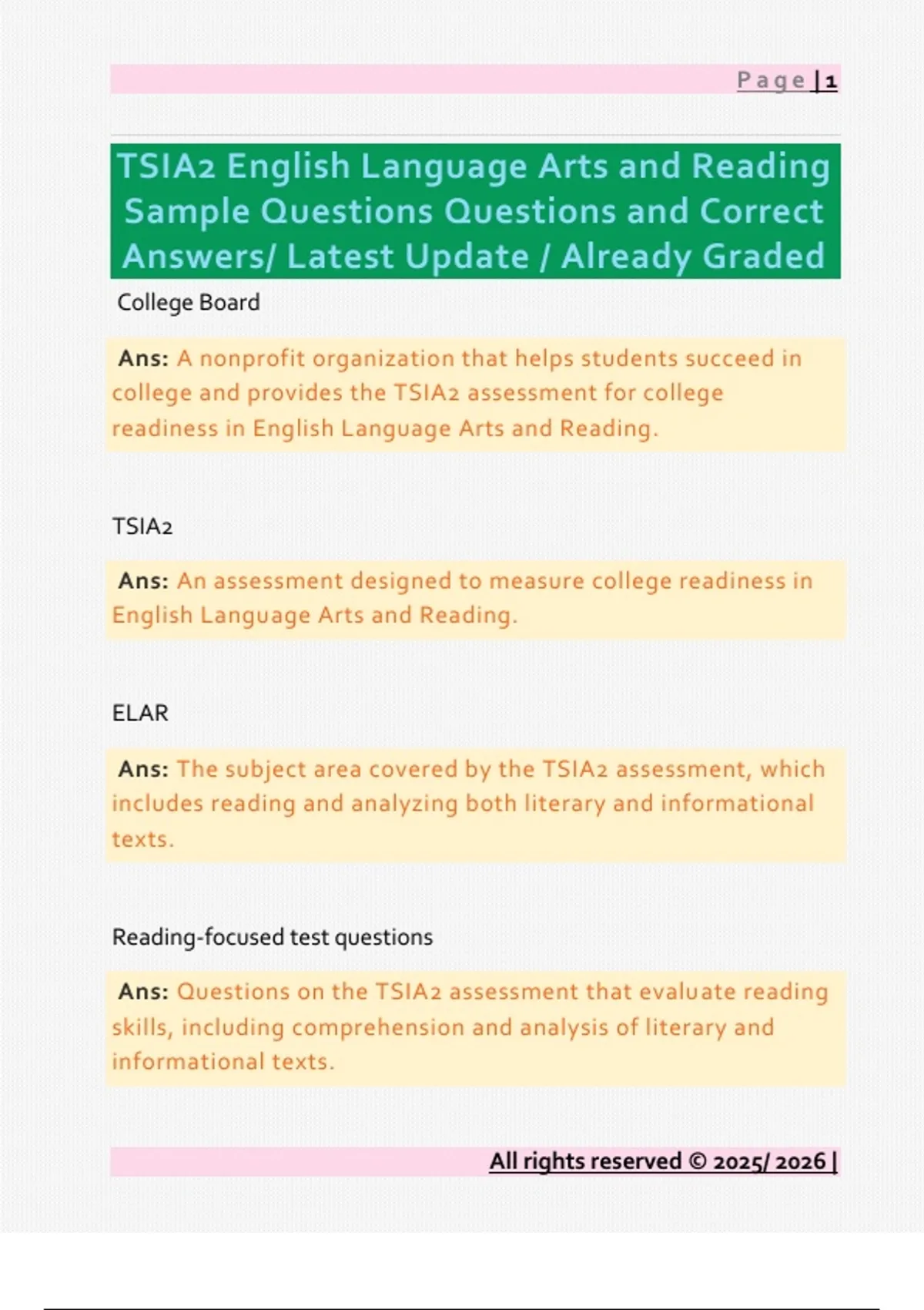 TSIA2-ELAR Questions and Correct Answers/ Latest Update / Already Graded