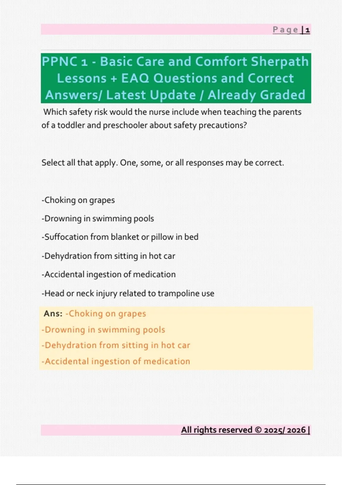 PPNC 1 - Basic Care and Comfort Sherpath Lessons + EAQ Questions and Correct Answers/ Latest Update / Already Graded