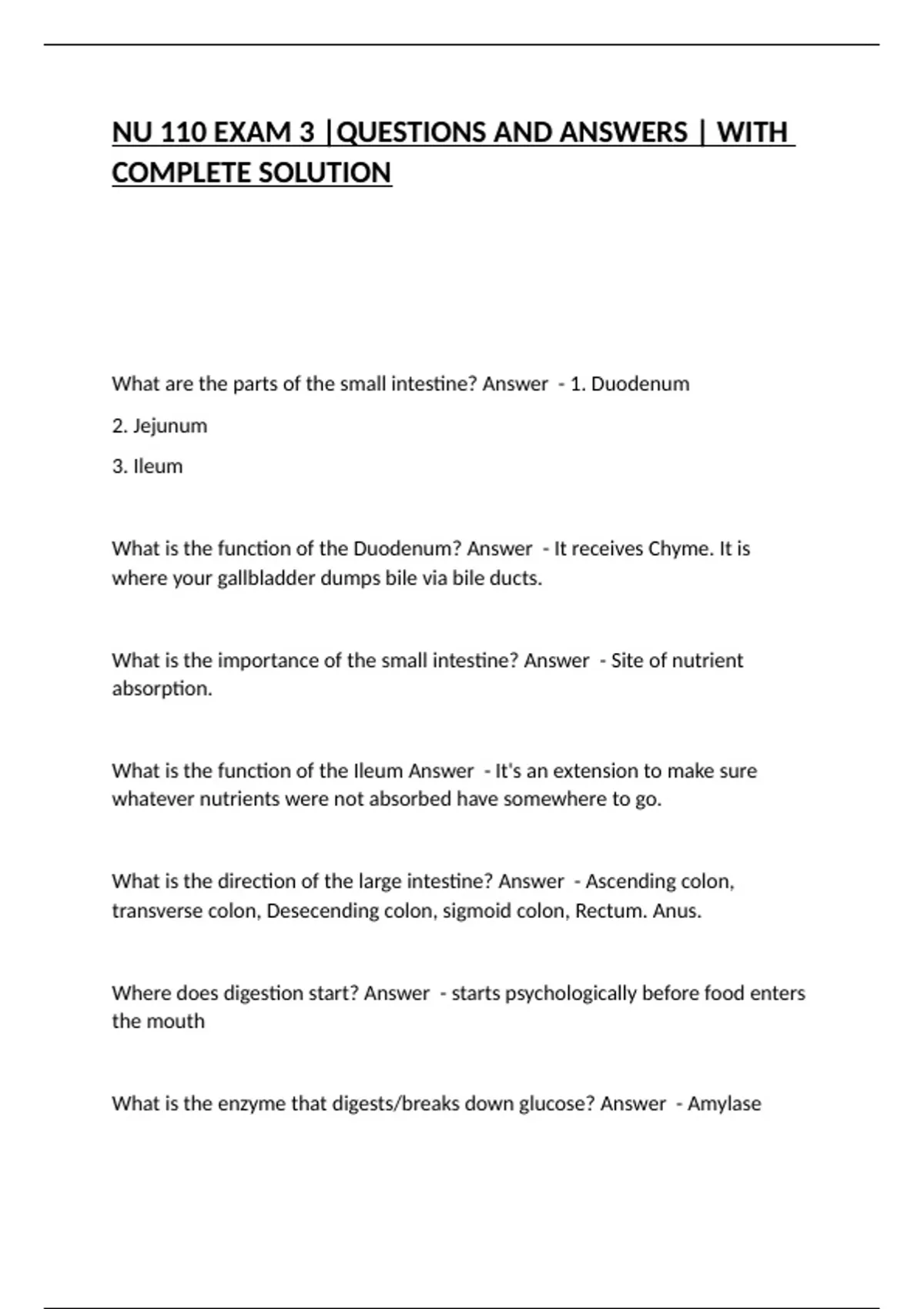NU 110 EXAM 3 |QUESTIONS AND ANSWERS | WITH COMPLETE SOLUTION