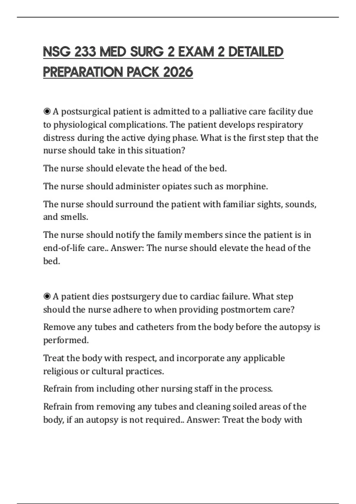 NSG 233 MED SURG 2 EXAM 2 DETAILED PREPARATION PACK 2026
