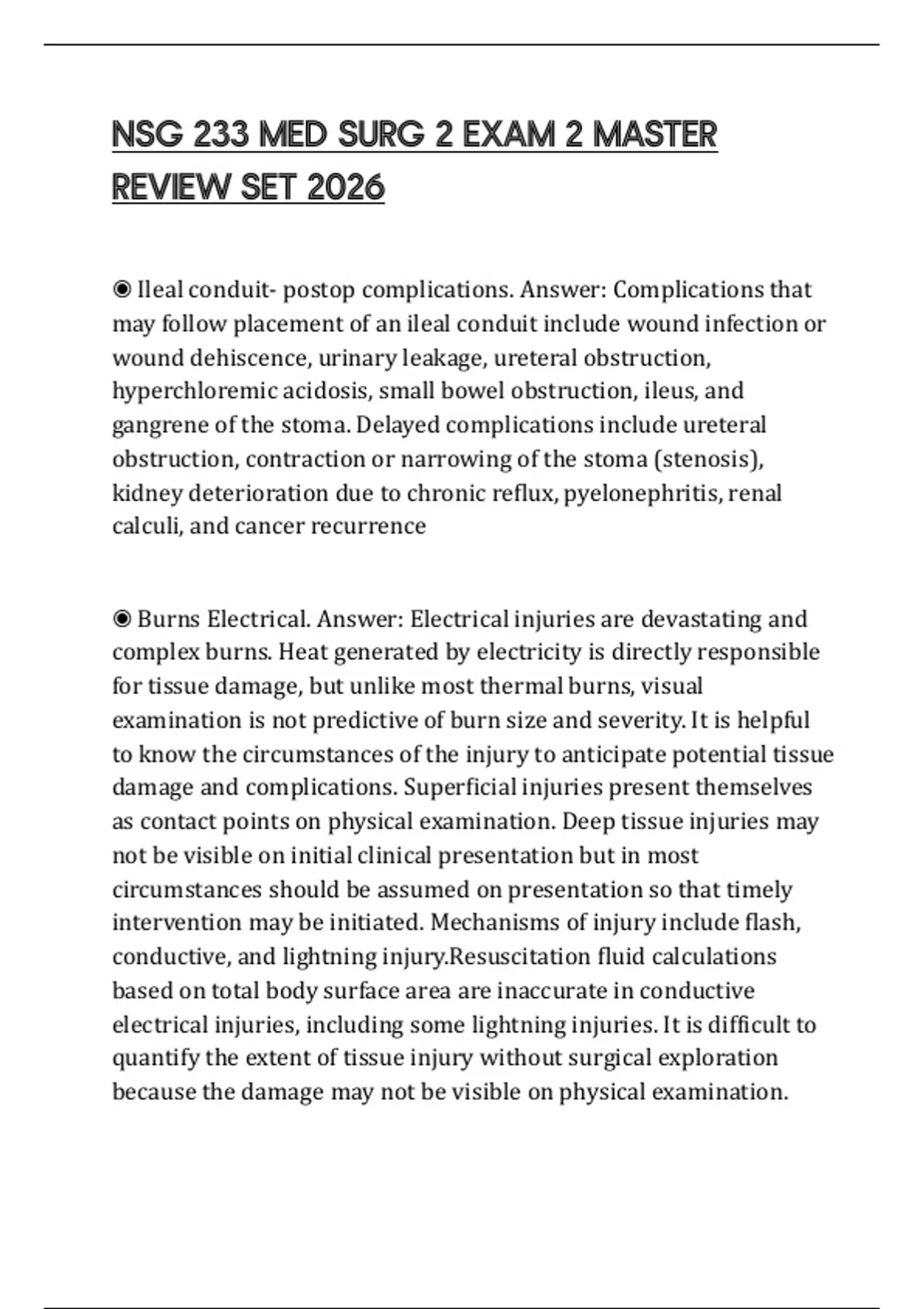 NSG 233 MED SURG 2 EXAM 2 MASTER REVIEW SET 2026