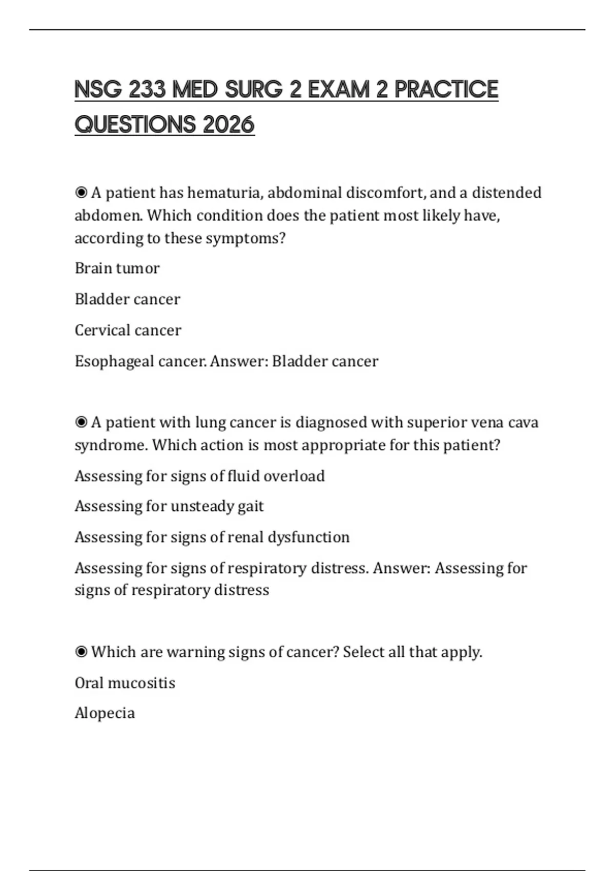 NSG 233 MED SURG 2 EXAM 2 PRACTICE QUESTIONS 2026