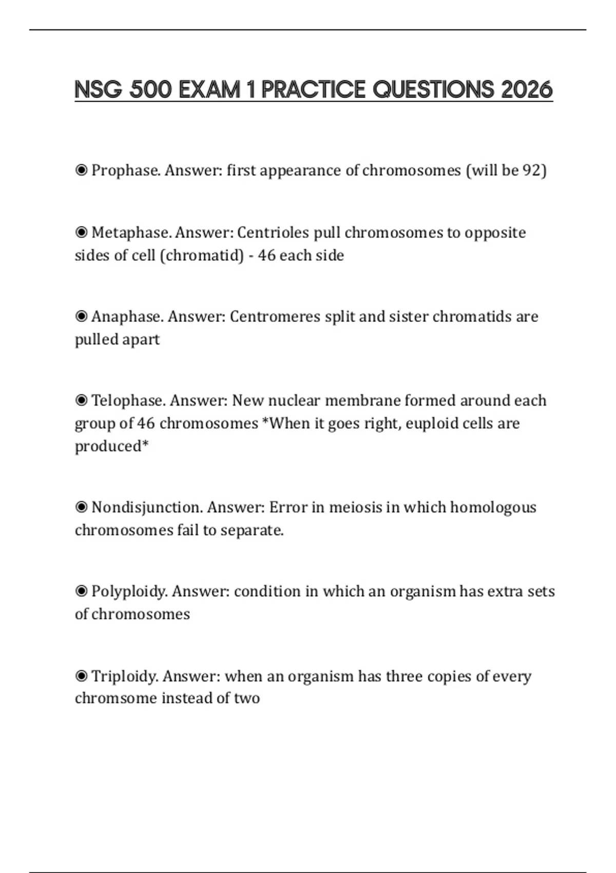 ◉ Triploidy. Answer: when an organism has three copies of every