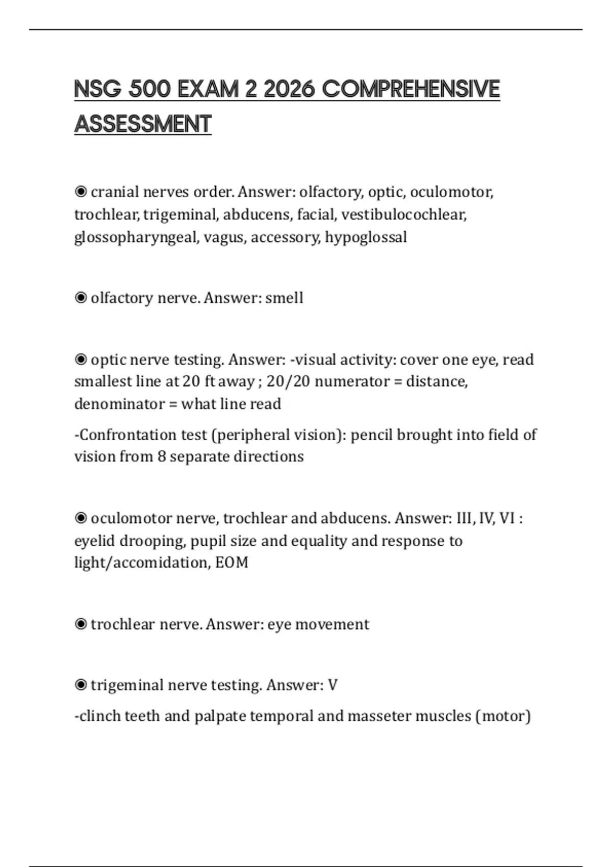 ◉ optic nerve testing. Answer: -visual activity: cover one eye, read