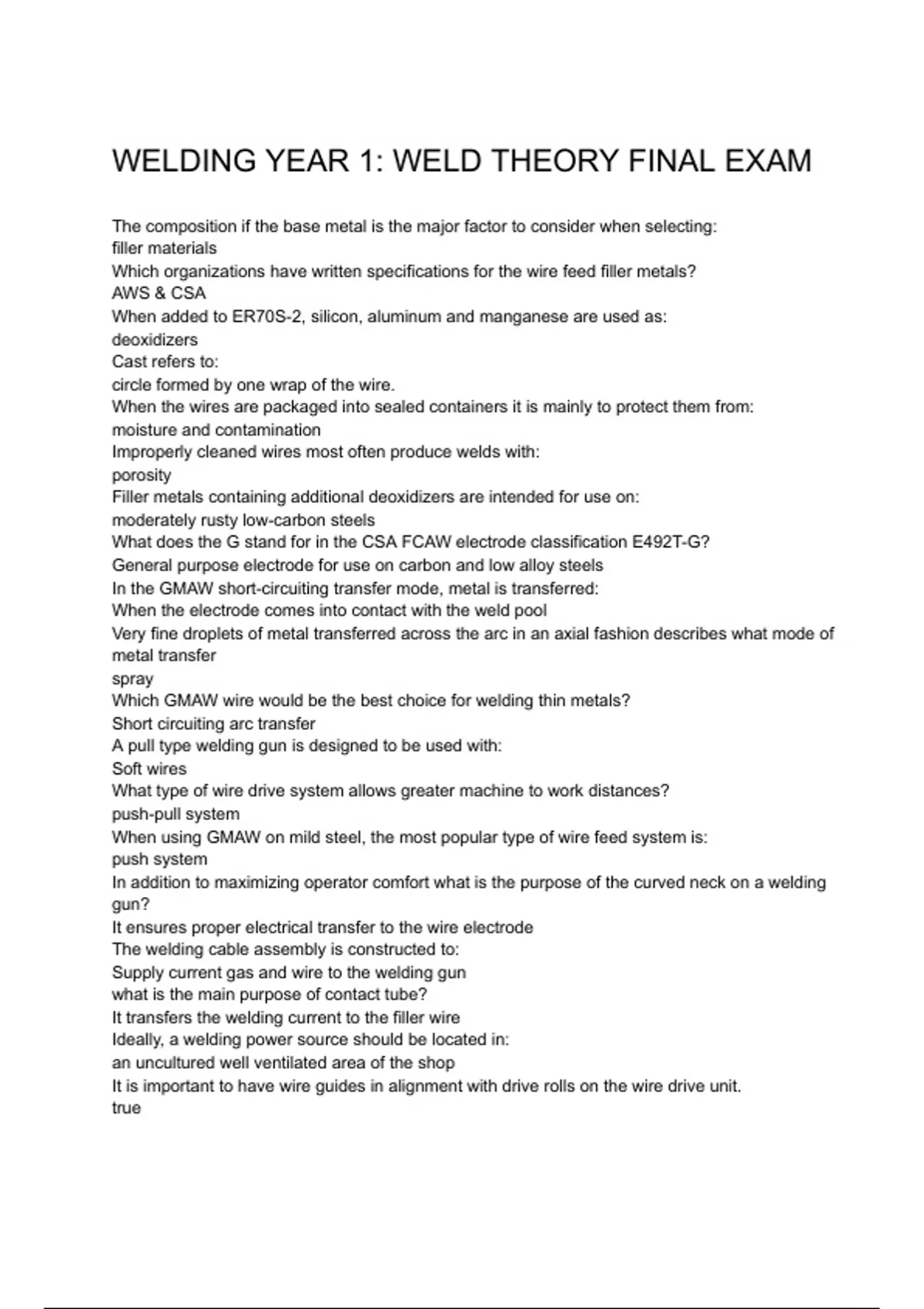 the Welding Year 1 Weld Theory Final Exam 2025/ 2026 with solution, including a complete test bank, correct answers, and detailed study guide to master welding theory, safety procedures, and technical concepts, boost exam performance, and achieve certification success.