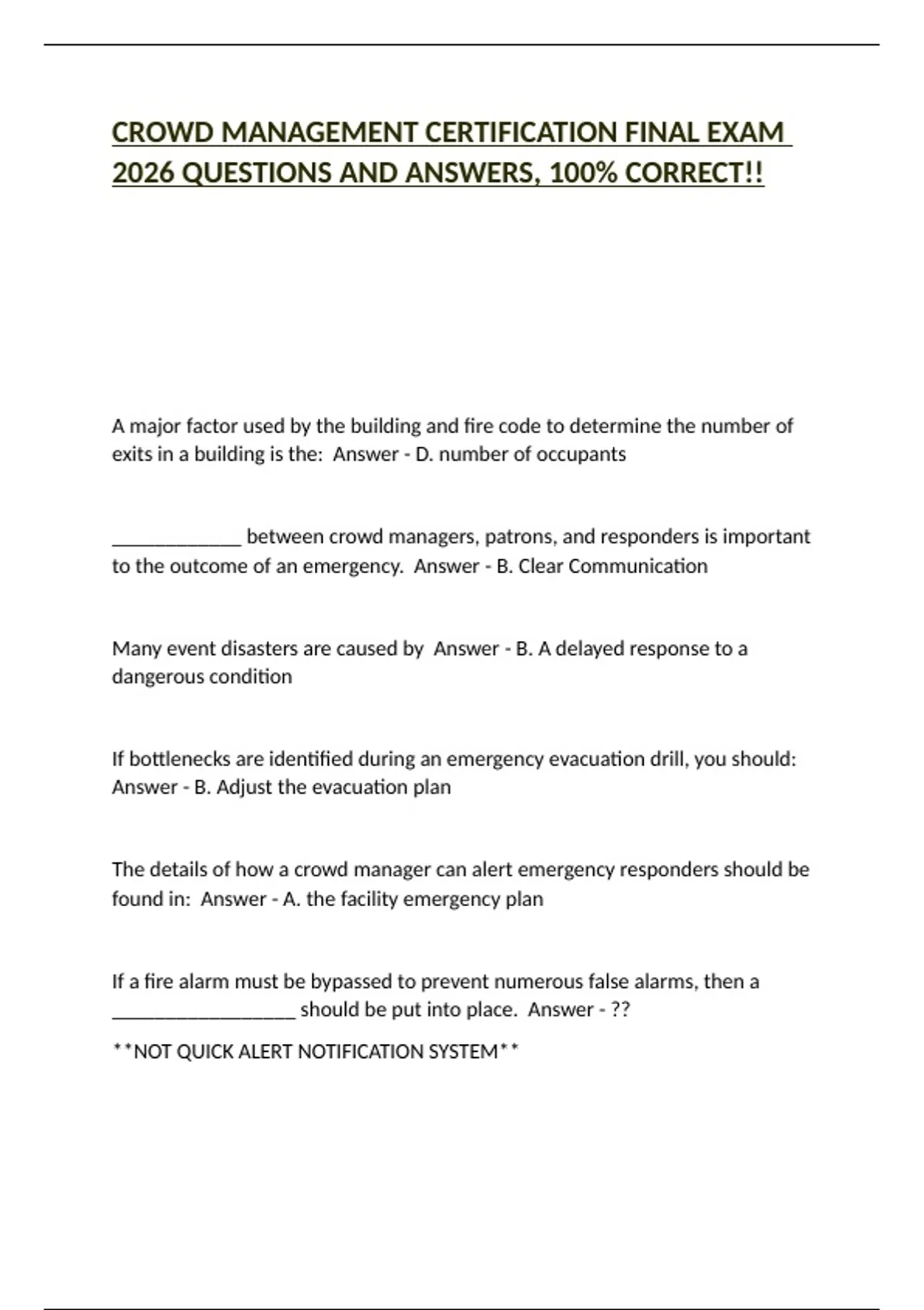 CROWD MANAGEMENT CERTIFICATION FINAL EXAM 2026 QUESTIONS AND ANSWERS, 100% CORRECT!!