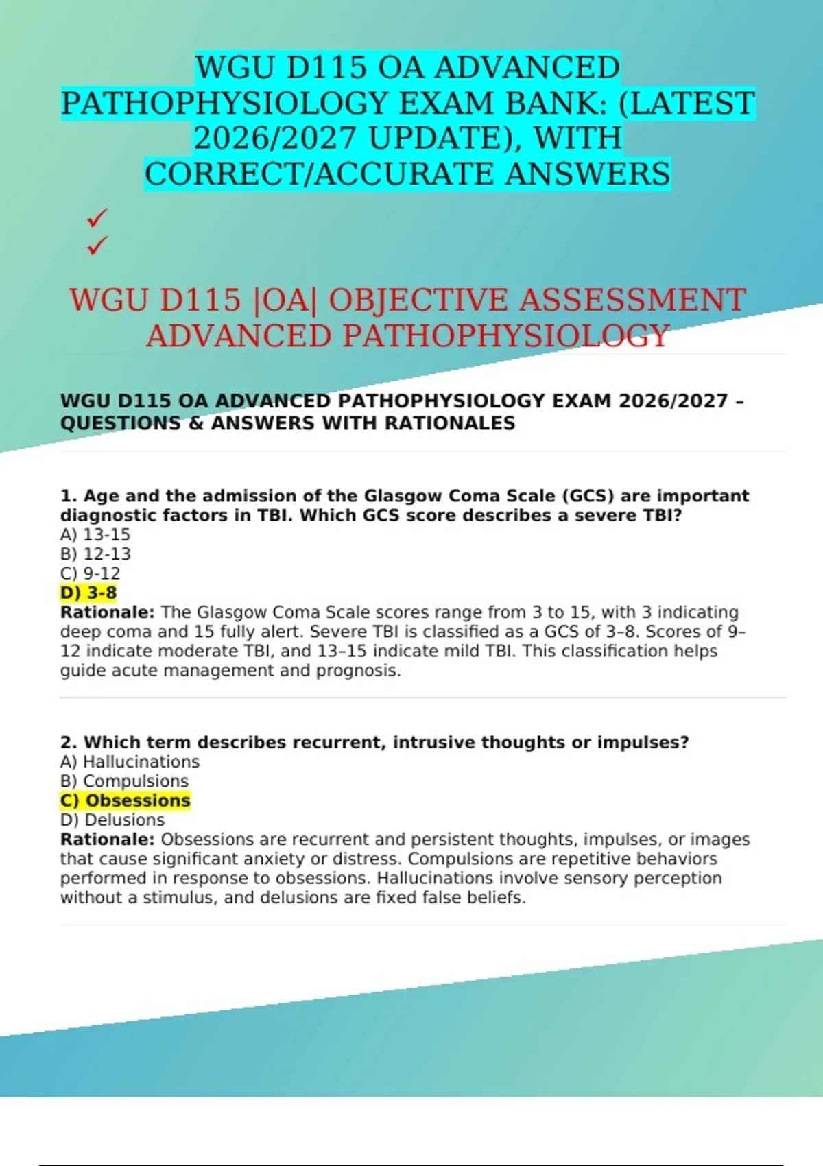 WGU D115 OA ADVANCED PATHOPHYSIOLOGY EXAM 2026/2027 –