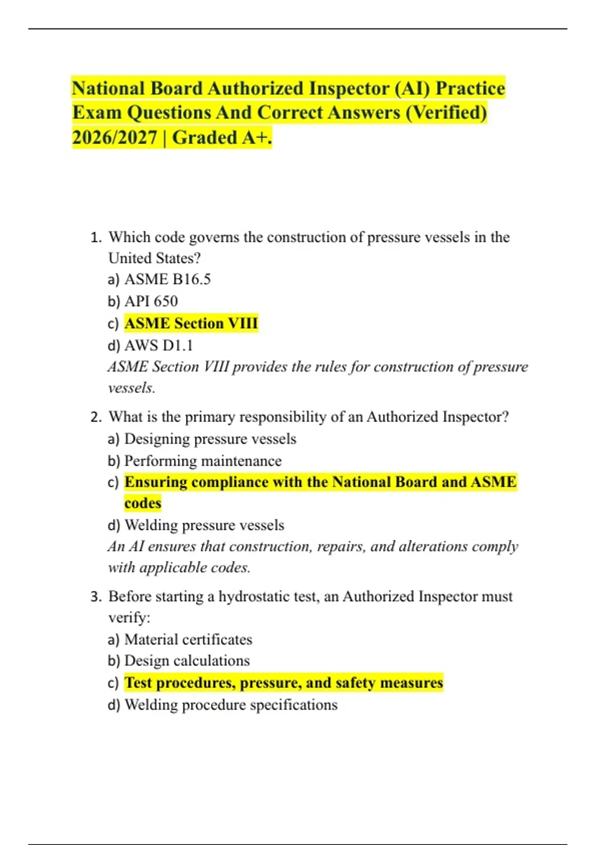 3. Before starting a hydrostatic test, an Authorized Inspector must