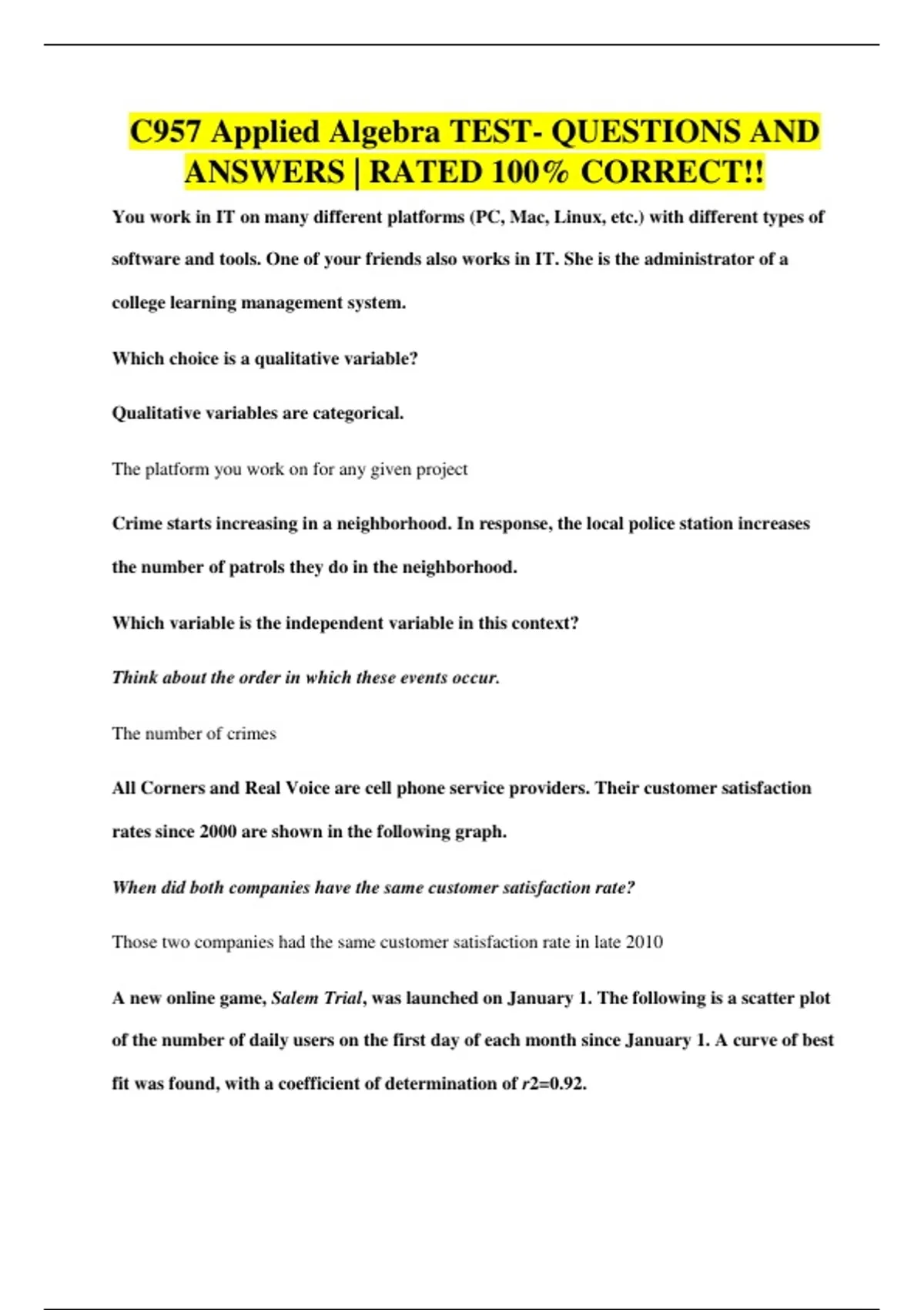C957 Applied Algebra TEST- QUESTIONS AND