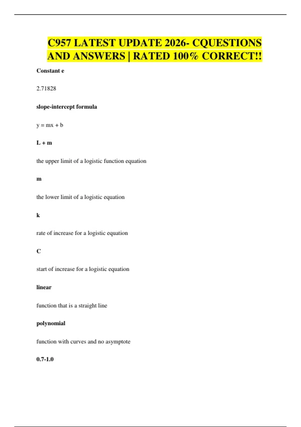 C957 LATEST UPDATE 2026- CQUESTIONS AND ANSWERS | RATED 100% CORRECT