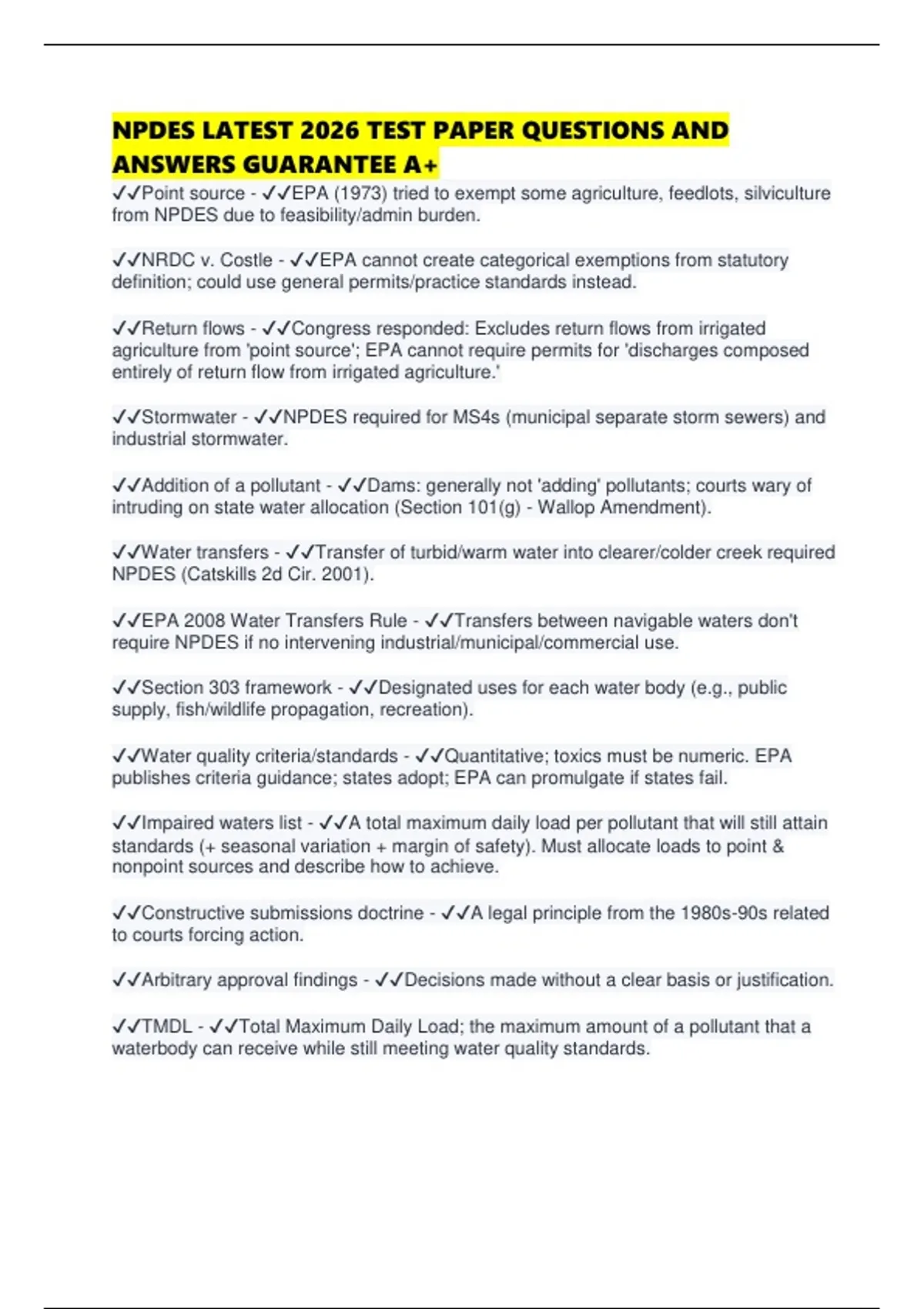 NPDES LATEST 2026 TEST PAPER QUESTIONS AND ANSWERS GUARANTEE A+