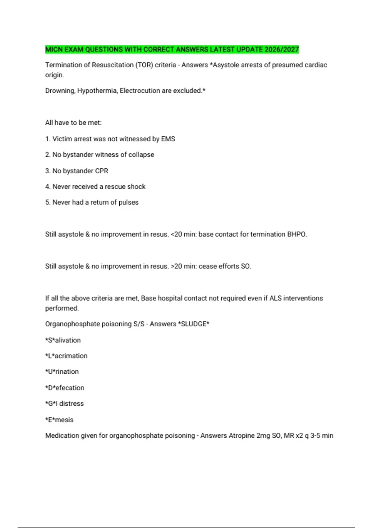 Termination of Resuscitation (TOR) criteria - Answers *Asystole arrests of presumed cardiac