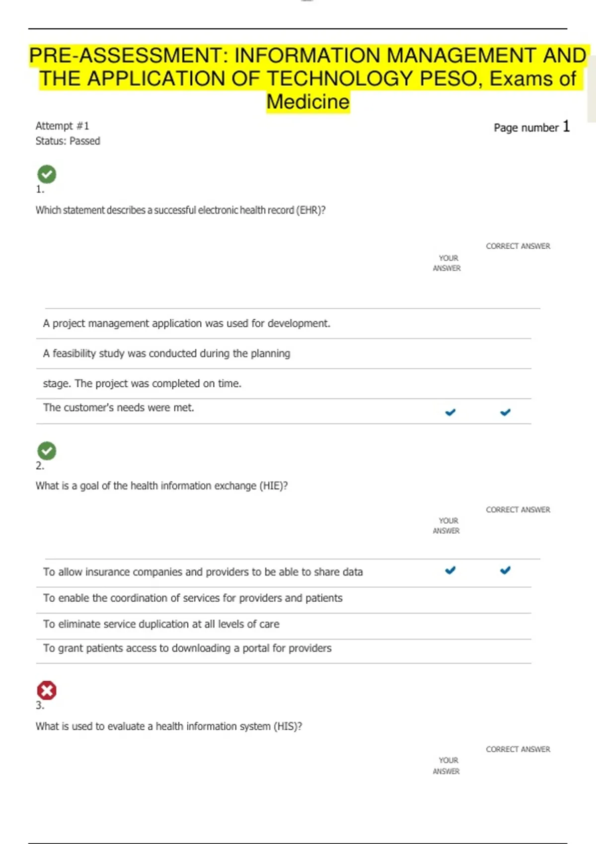 Pre Assessment Information Management and the Application of Technology PESO Medicine Exam Study Guide