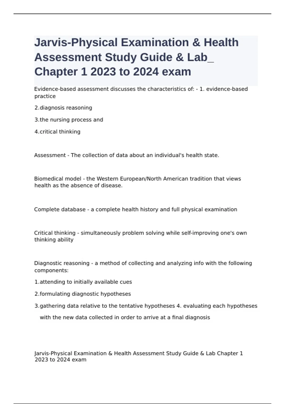 Jarvis-Physical Examination & Health Assessment Study Guide & Lab Chapter 1