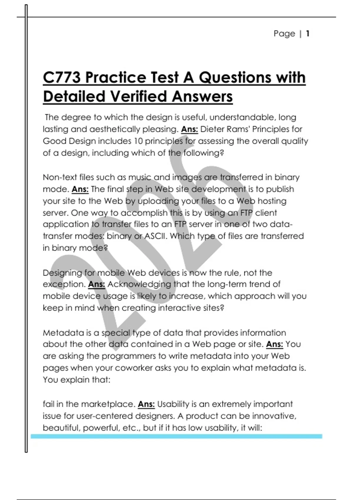 C773 Practice Test A Questions with