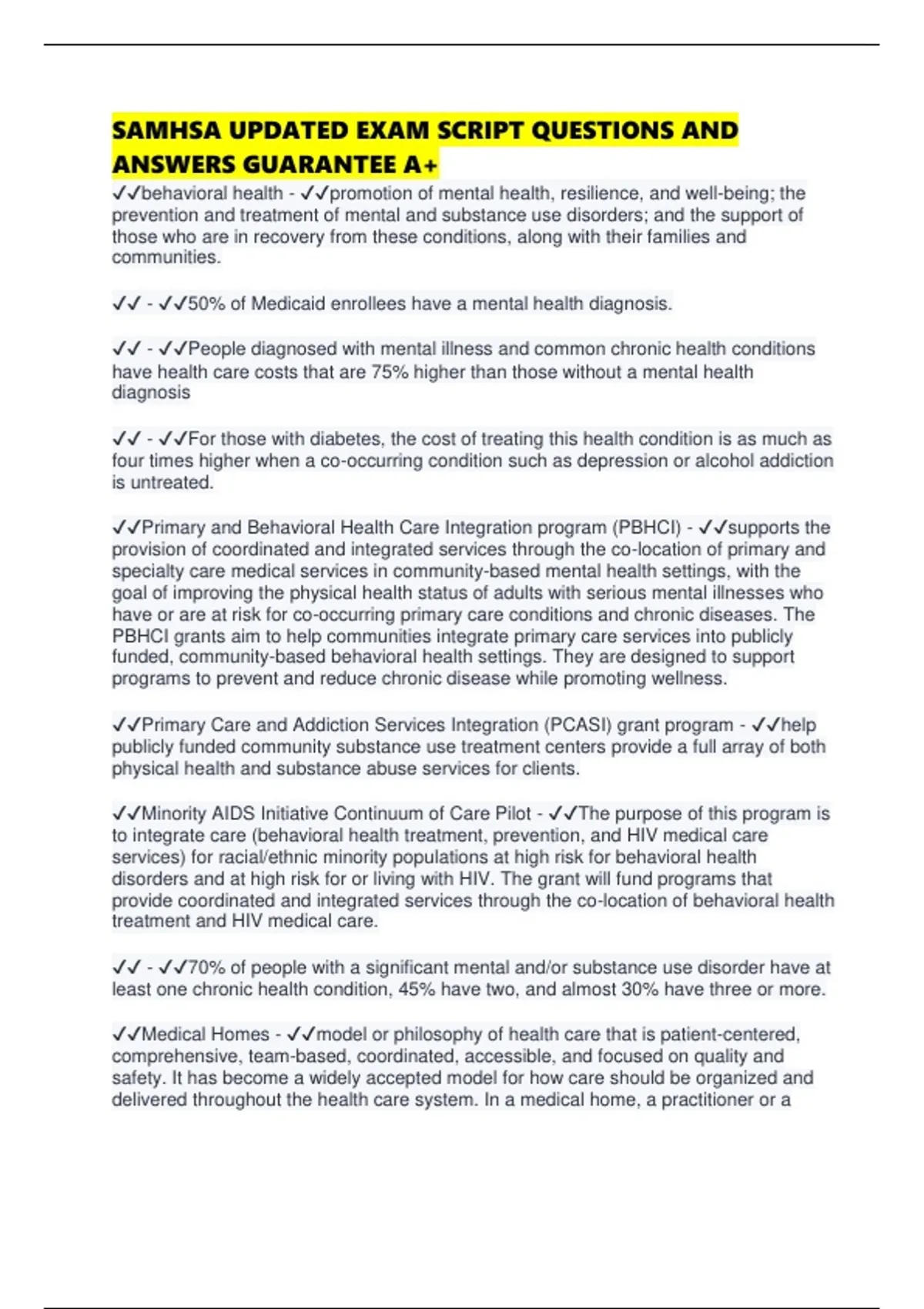 SAMHSA UPDATED EXAM SCRIPT QUESTIONS AND ANSWERS GUARANTEE A+
