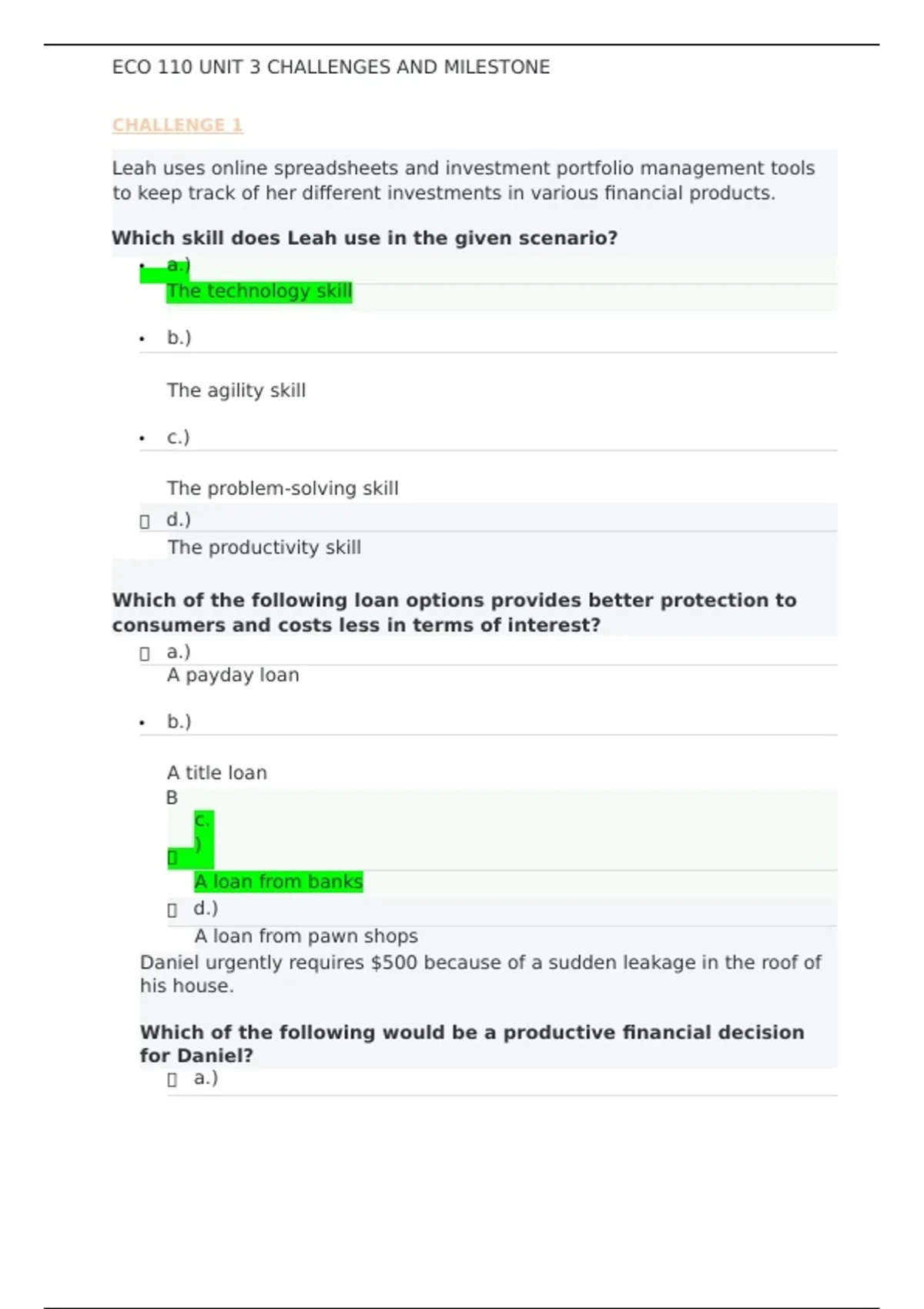 ,ECO 110 UNIT 3 CHALLENGES AND MILESTONE