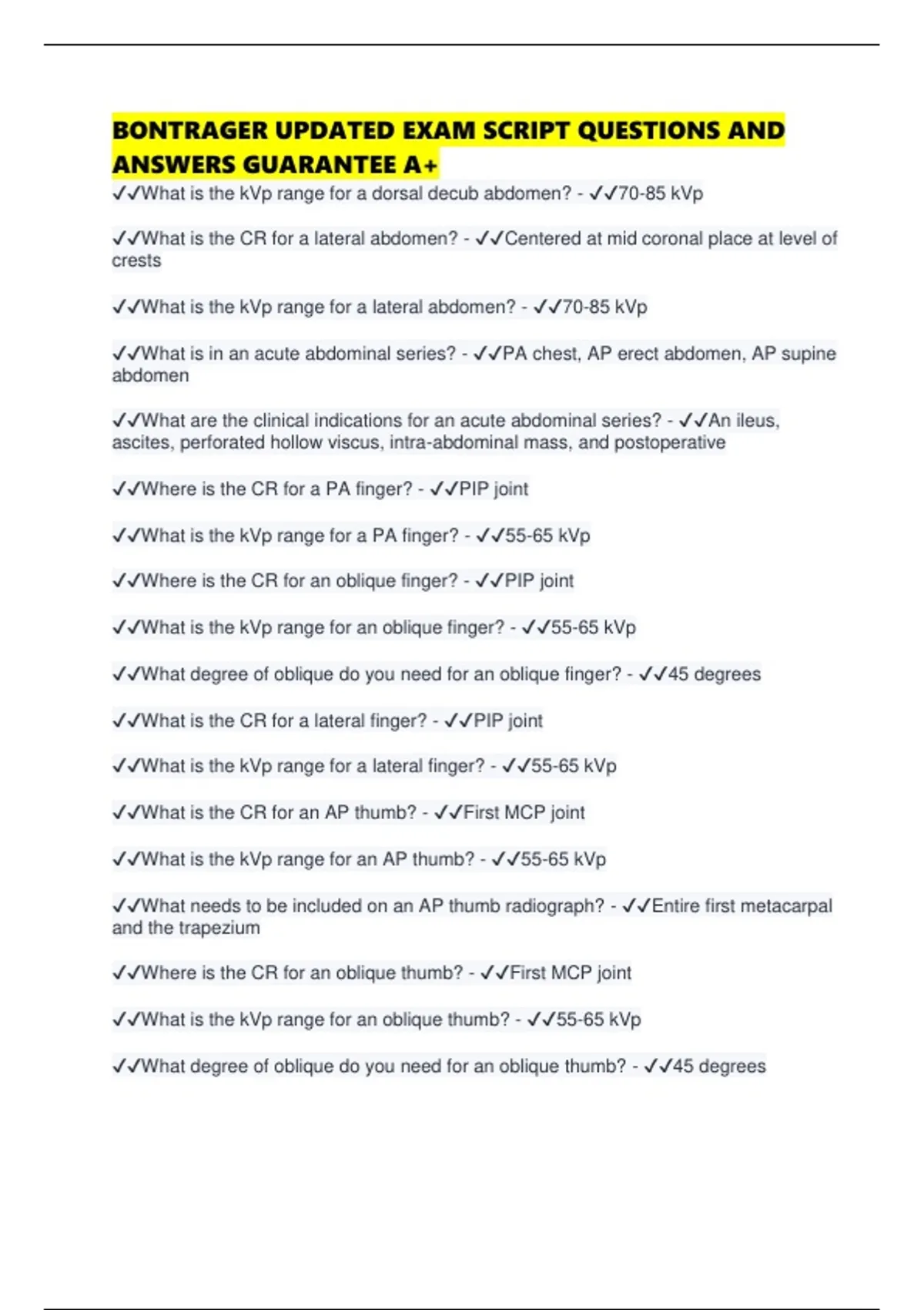 BONTRAGER UPDATED EXAM SCRIPT QUESTIONS AND ANSWERS GUARANTEE A+