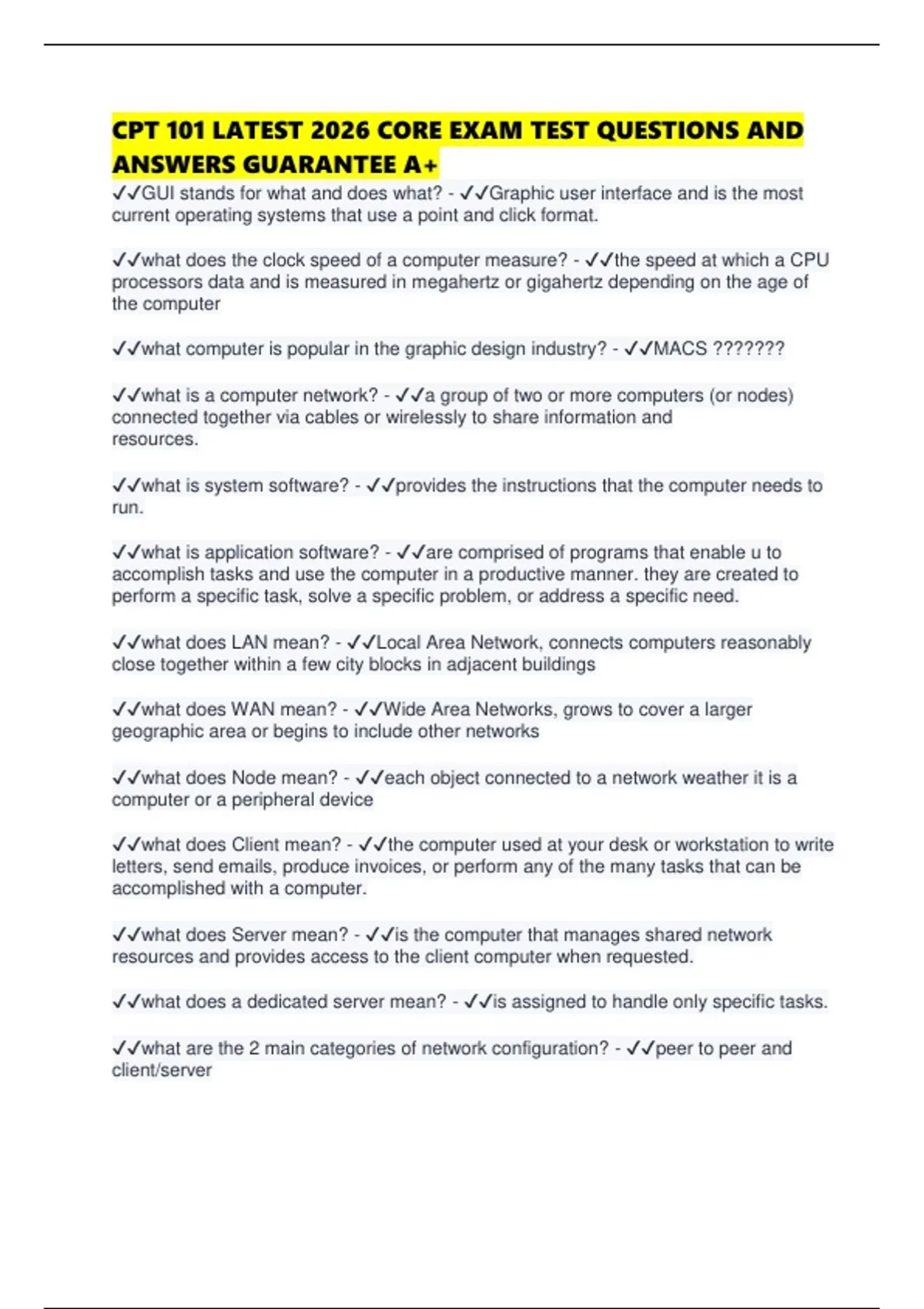 ✔✔what does the clock speed of a computer measure? - ✔✔the speed at which a CPU