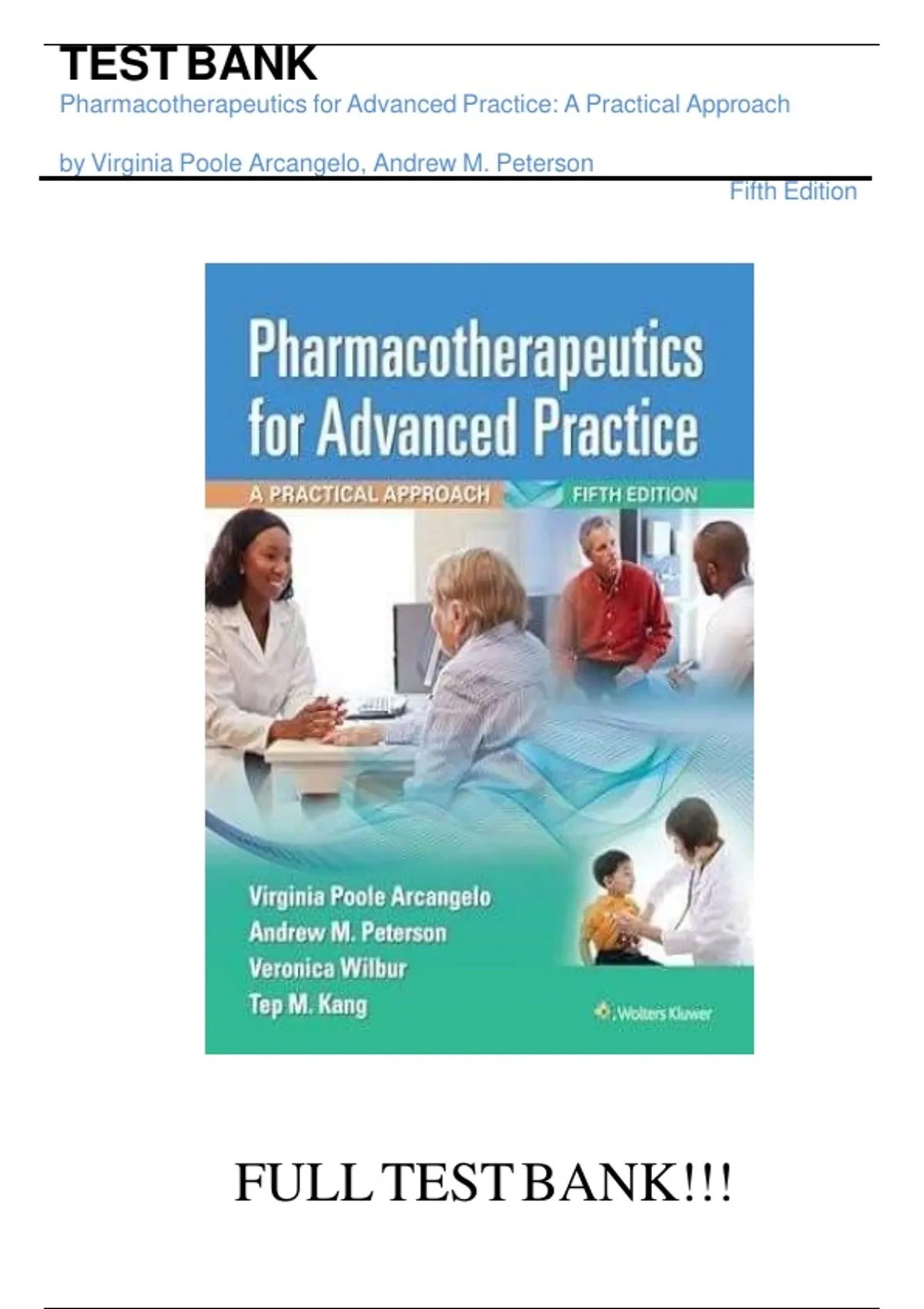 Ace your exams and master advanced pharmacotherapeutics with the complete Test Bank for Pharmacotherapeutics for Advanced Practice: A Practical Approach, 5th Edition by Virginia Poole Arcangelo and Andrew M. Peterson. This essential study resource is packed with hundreds of multiple-choice and multiple-response questions covering all key topics—perfect for nurse practitioners, physician assistants, and advanced practice students. What’s Inside: Chapter-by-Chapter Review – Reinforce your understanding of drug therapy principles, pharmacokinetics, pharmacodynamics, and clinical applications. Real Exam-Style Questions – Practice with questions modeled after course assessments and certification exams. Detailed Answer Explanations – Learn not just the correct answer, but the reasoning behind it. Comprehensive Coverage – Includes chapters on: Issues in Drug Therapy & Prescriptive Authority Pharmacokinetics & Pharmacodynamics Drug Interactions & Adverse Events Pediatric & Geriatric Pharmacotherapy Pain Management, Antimicrobials, Cardiovascular, Respiratory, Endocrine, and Psychiatric Medications Special Populations, Immunizations, Substance Use, and Much More! Why Choose This Test Bank? Build confidence for exams, NCLEX, and certification tests. Save time with organized, high-yield review material. Enhance critical thinking and clinical decision-making skills. Ideal for self-study, group review, and instructor-led test preparation. Whether you’re preparing for a midterm, final, or board exam, this test bank provides the practice and insight you need to excel. Don’t just study—succeed with the most trusted review companion for advanced pharmacotherapeutics. Get Your Copy Today and Take the Next Step Toward Academic and Clinical Excellence!