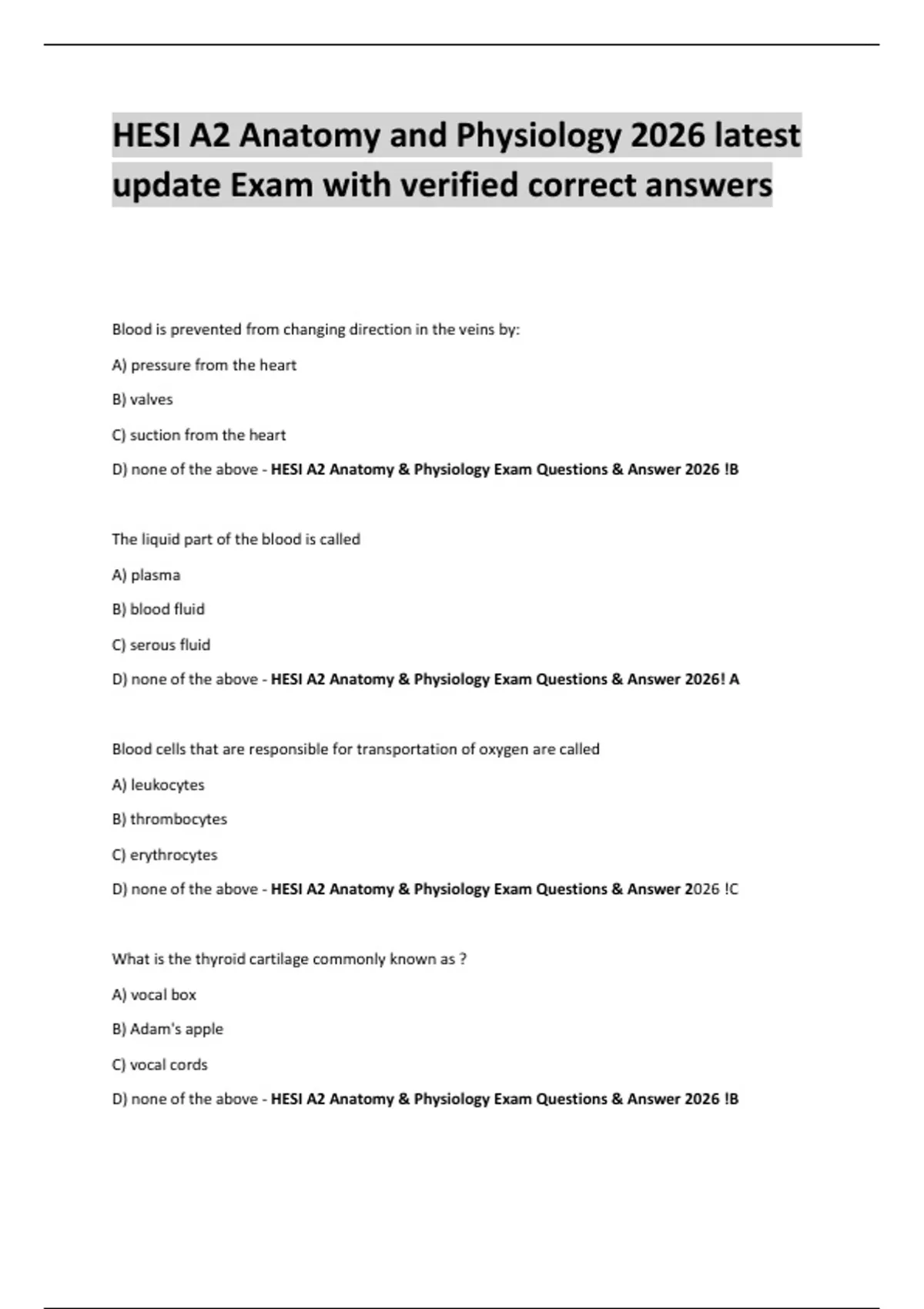 D) none of the above - HESI A2 Anatomy & Physiology Exam Questions & Answer 2026 !B