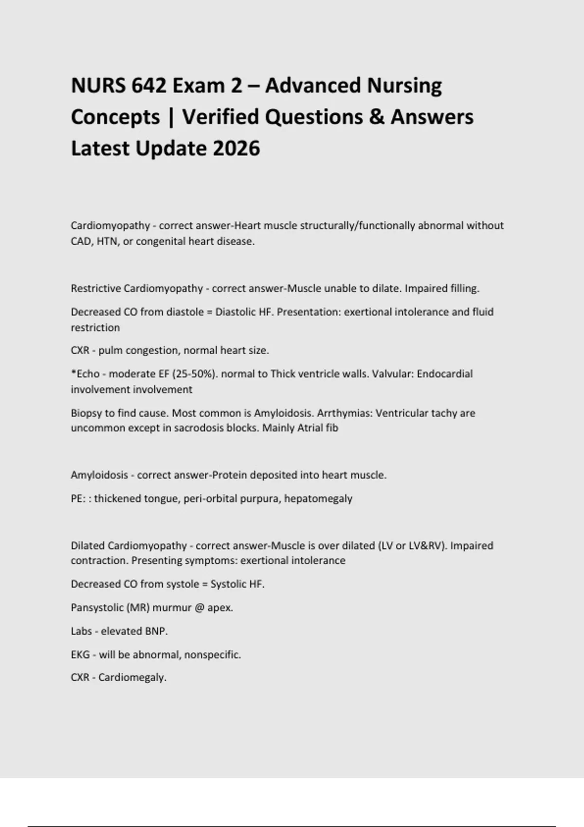 Amyloidosis - correct answer-Protein deposited into heart muscle.