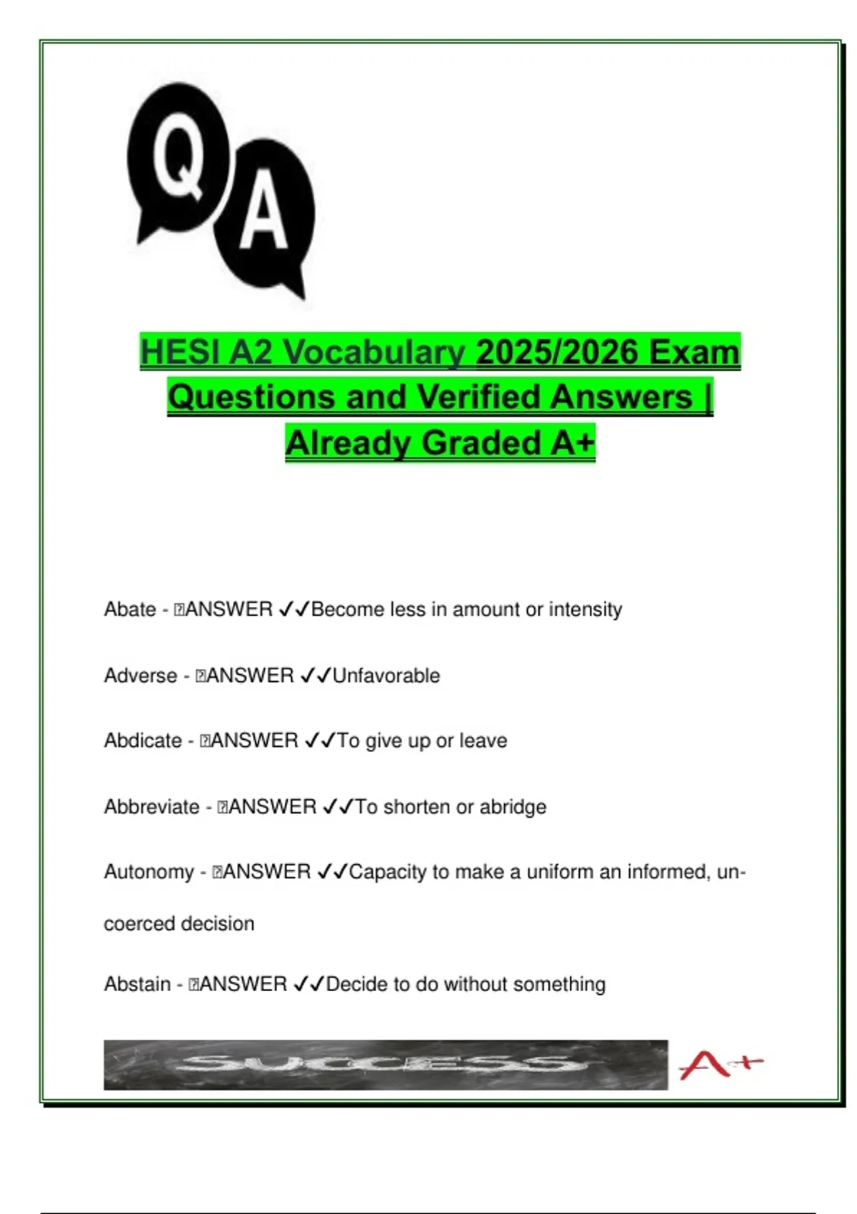Abate - 🧠ANSWER ✔✔Become less in amount or intensity