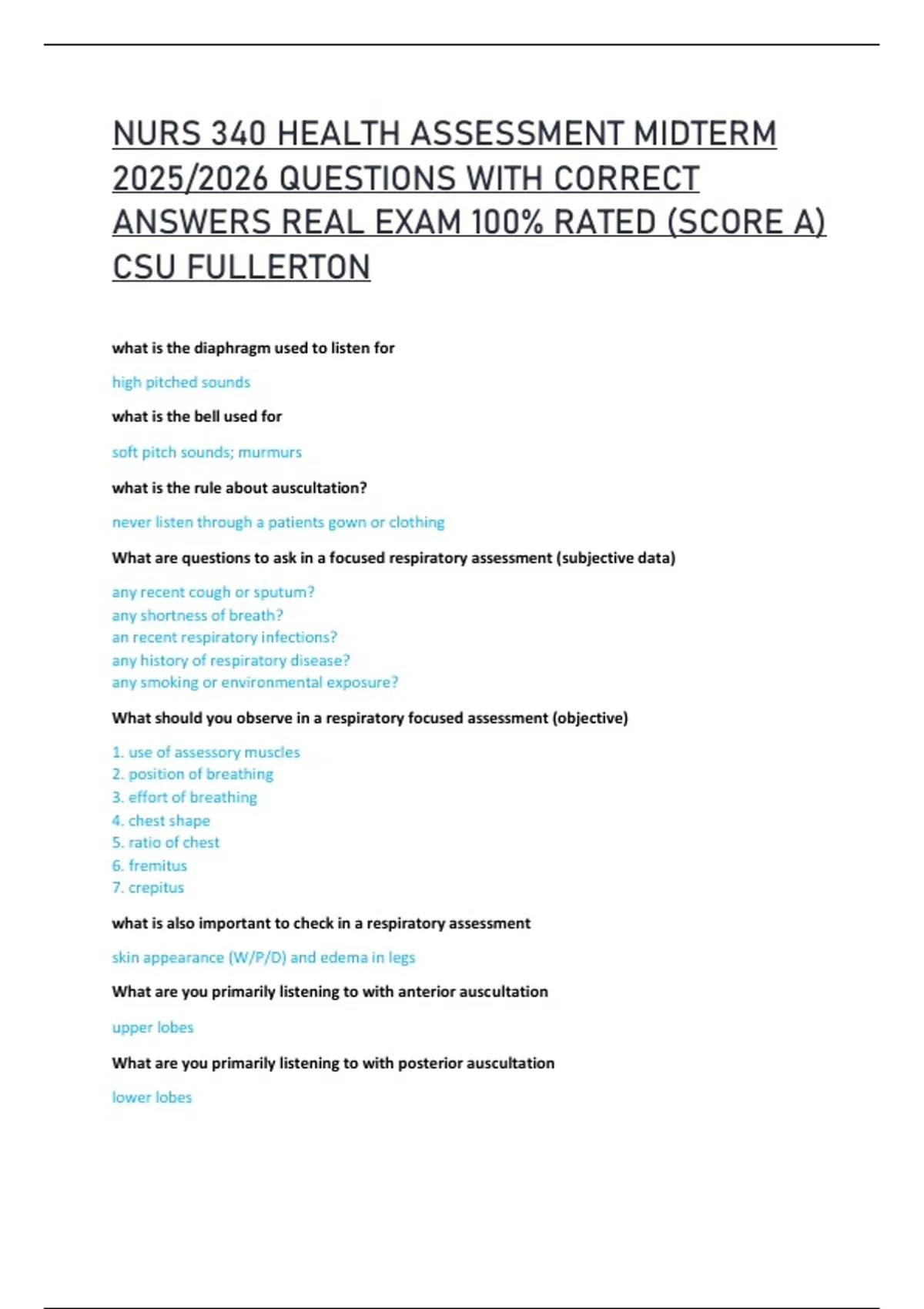 ANSWERS REAL EXAM 100% RATED (SCORE A)