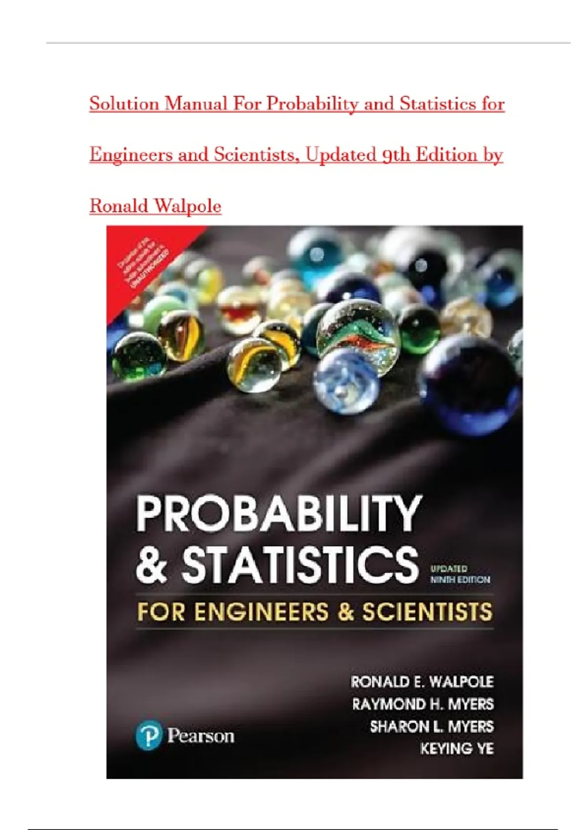 Solution Manual For Probability and Statistics for Engineers and Scientists, Updated 9th Edition by Ronald Walpole