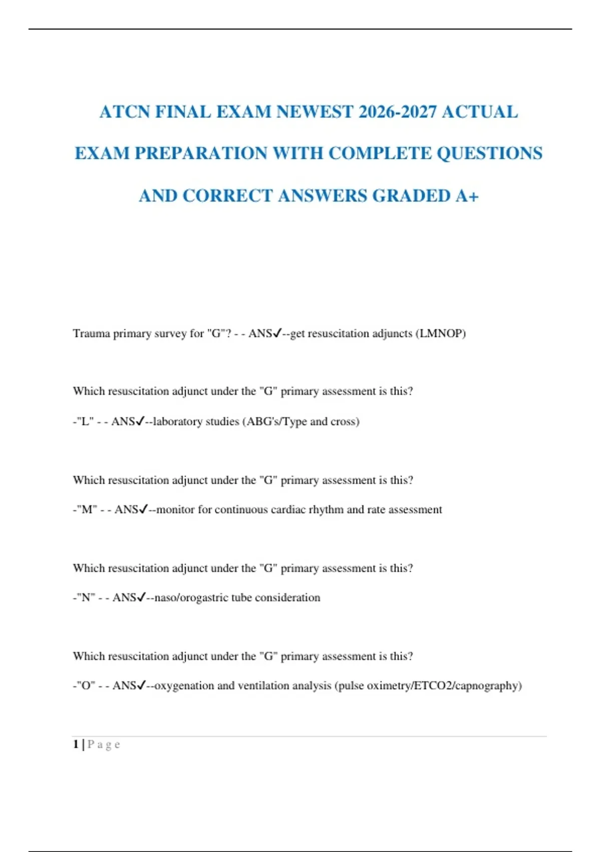 ATCN FINAL EXAM NEWEST ACTUAL EXAM PREPARATION WITH COMPLETE QUESTIONS AND CORRECT ANSWERS GRADED A+