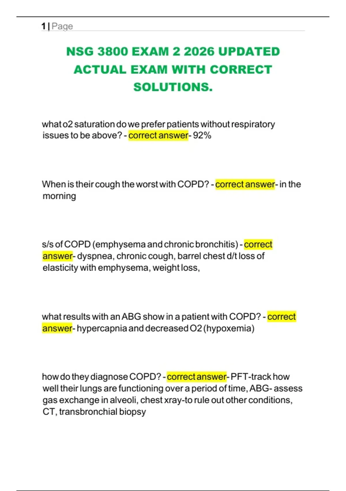 NSG 3800 EXAM 2 2026 UPDATED ACTUAL EXAM WITH CORRECT SOLUTIONS