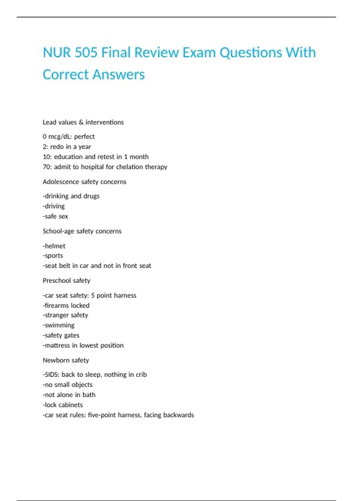 NUR 505 Final Review Exam Questions With